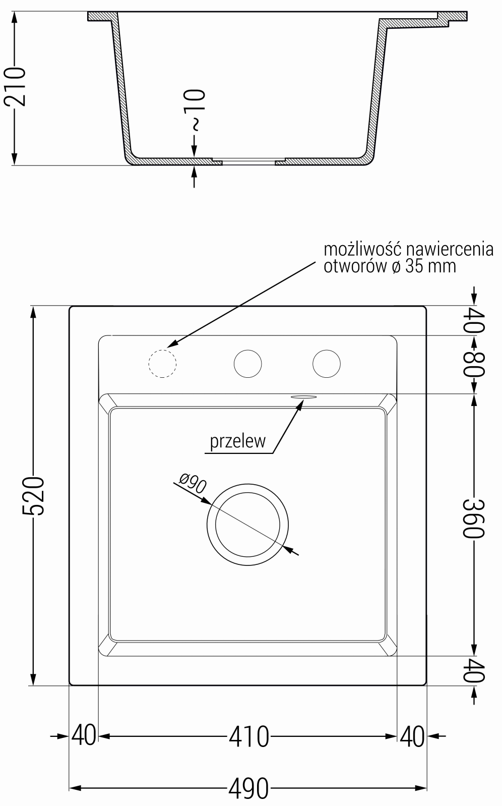 Afdruipgat diameter: ø90 mm