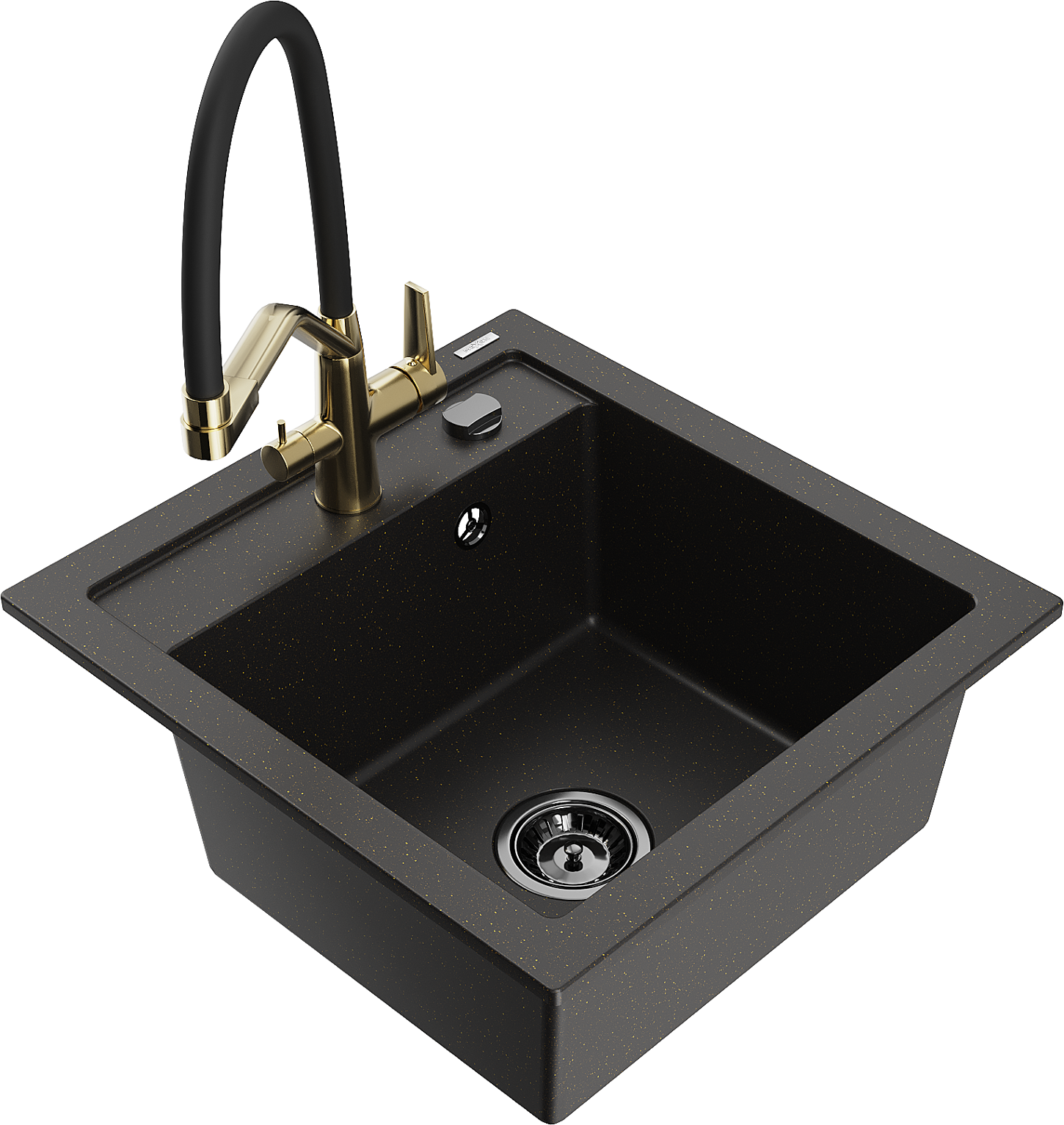 Mexen Vito granieten spoelbak 1-kamer met Duo keukenkraan, zwart/goud metallic - 6503-75-671701-57-B