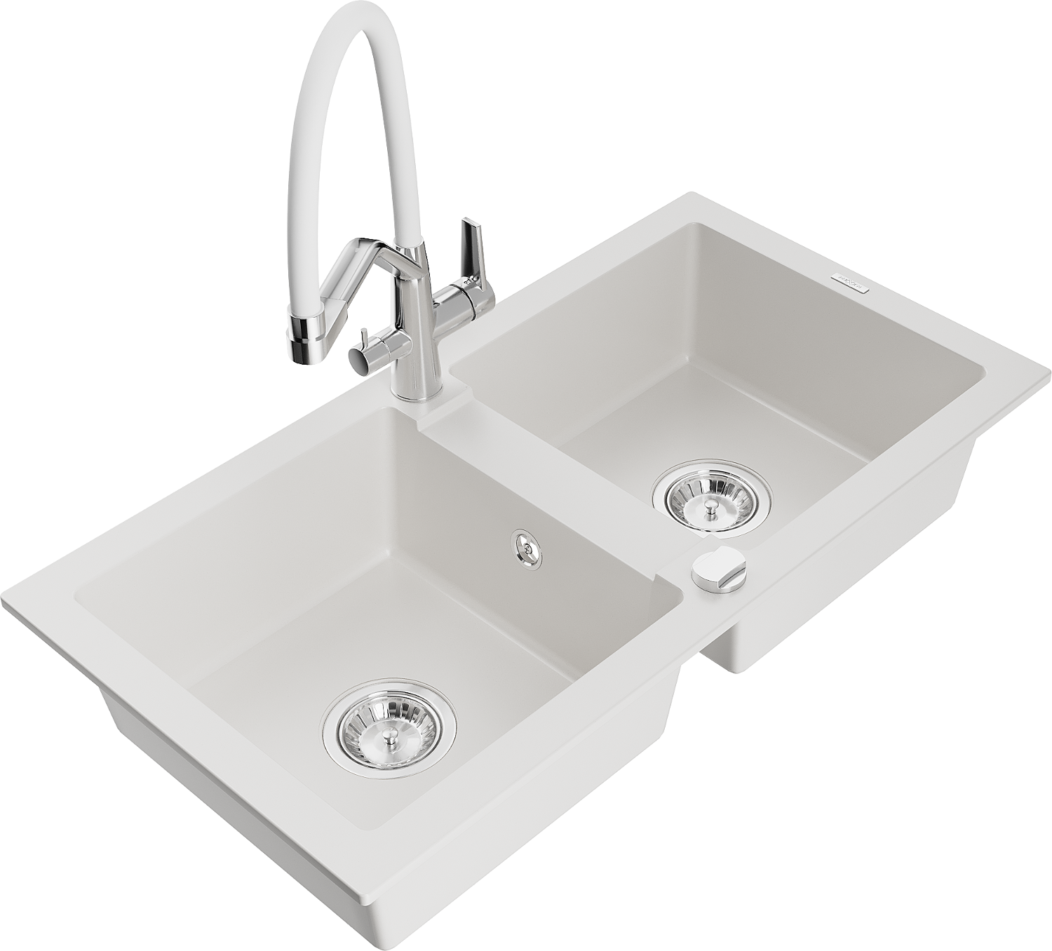 Mexen Mario granieten gootsteen 2-kamers met keukenmengkraan Duo, wit - 6504-20-671701-02