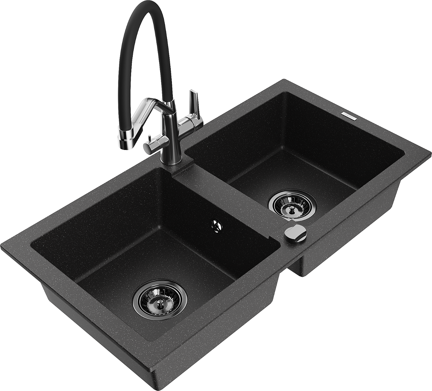 Mexen Mario granieten spoelbak met 2 kommen en keukenkraan Duo, zwart/zilver metallic - 6504-73-671701-07-B
