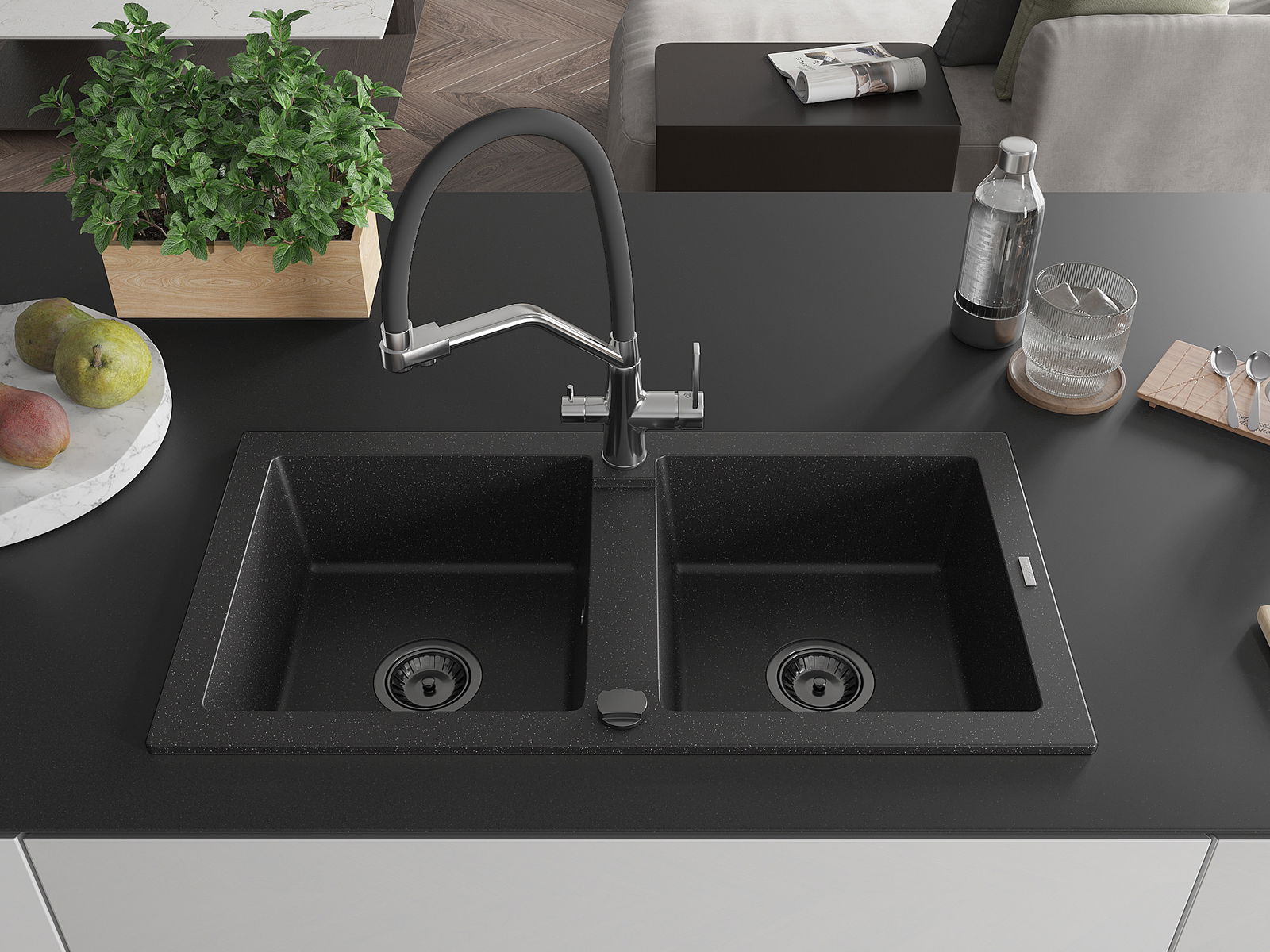 De gootsteen is gemaakt van hoogwaardig graniet. Het vormt een elegante en vooral praktische aanvulling op elke keuken, ongeacht de stijl. De hoge kwaliteit en duurzaamheid van graniet zorgen voor jarenlang gebruik.