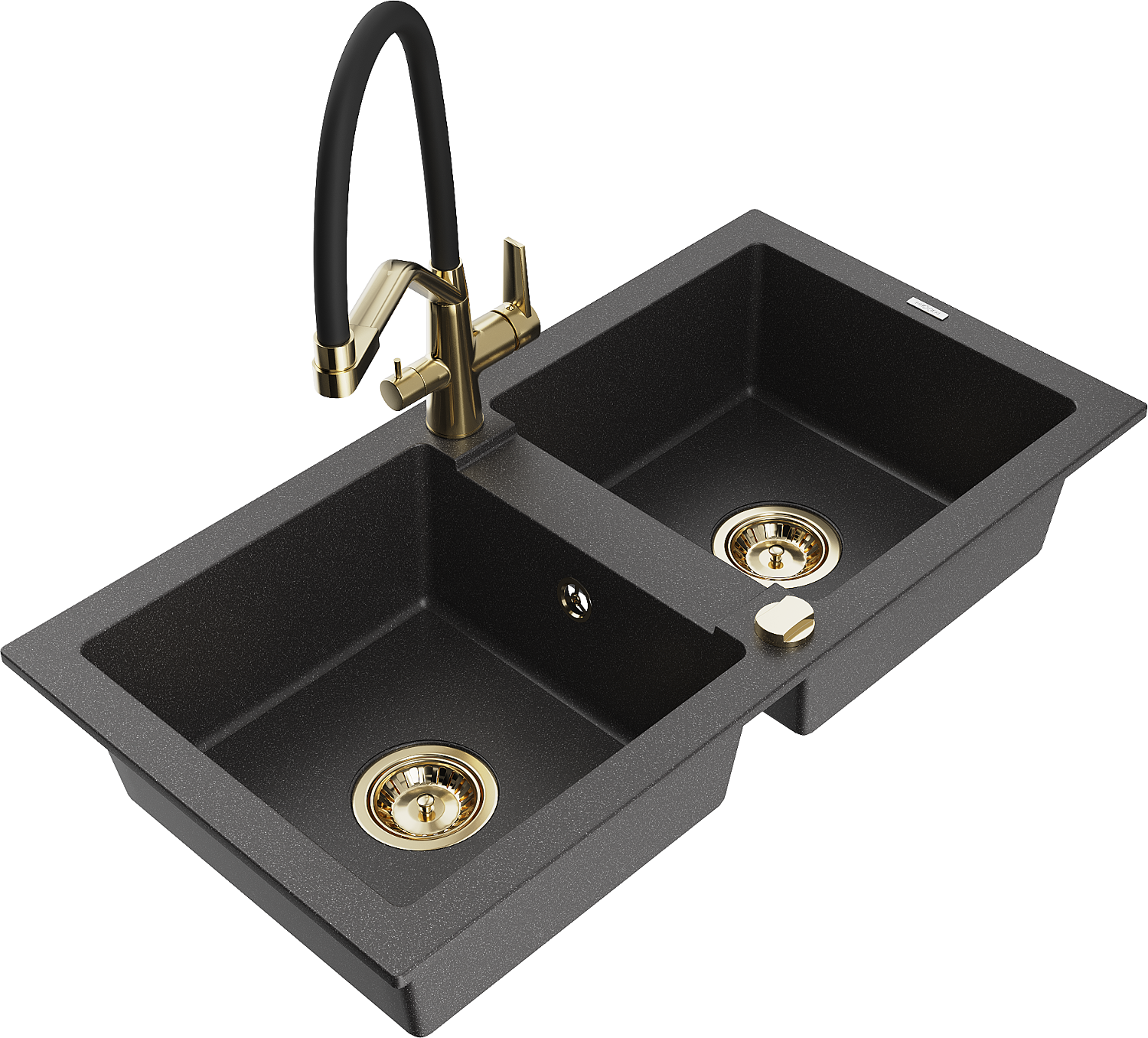 Mexen Mario granieten spoelbak 2-kamerig met keukenmengkraan Duo, zwart gespikkeld - 6504-76-671701-57-G