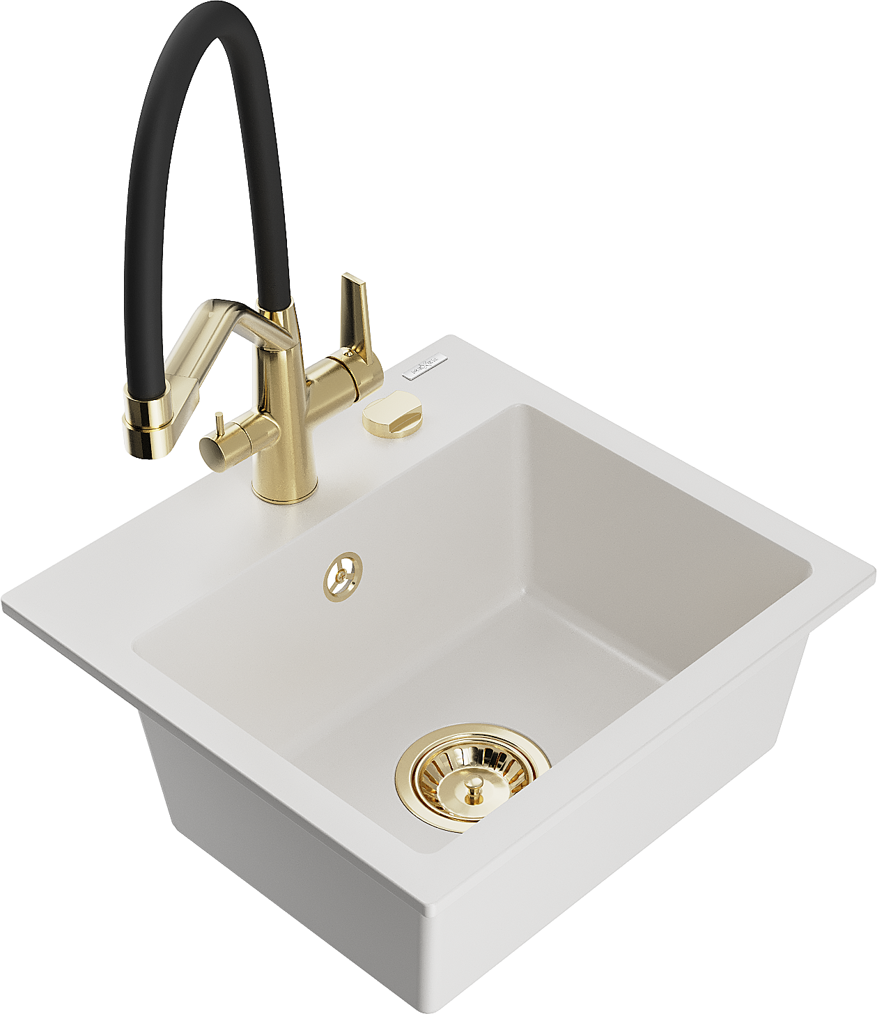 Mexen Milo granieten spoelbak 1-komors met Duo keukenmengkraan, wit - 6505-20-671701-57-G