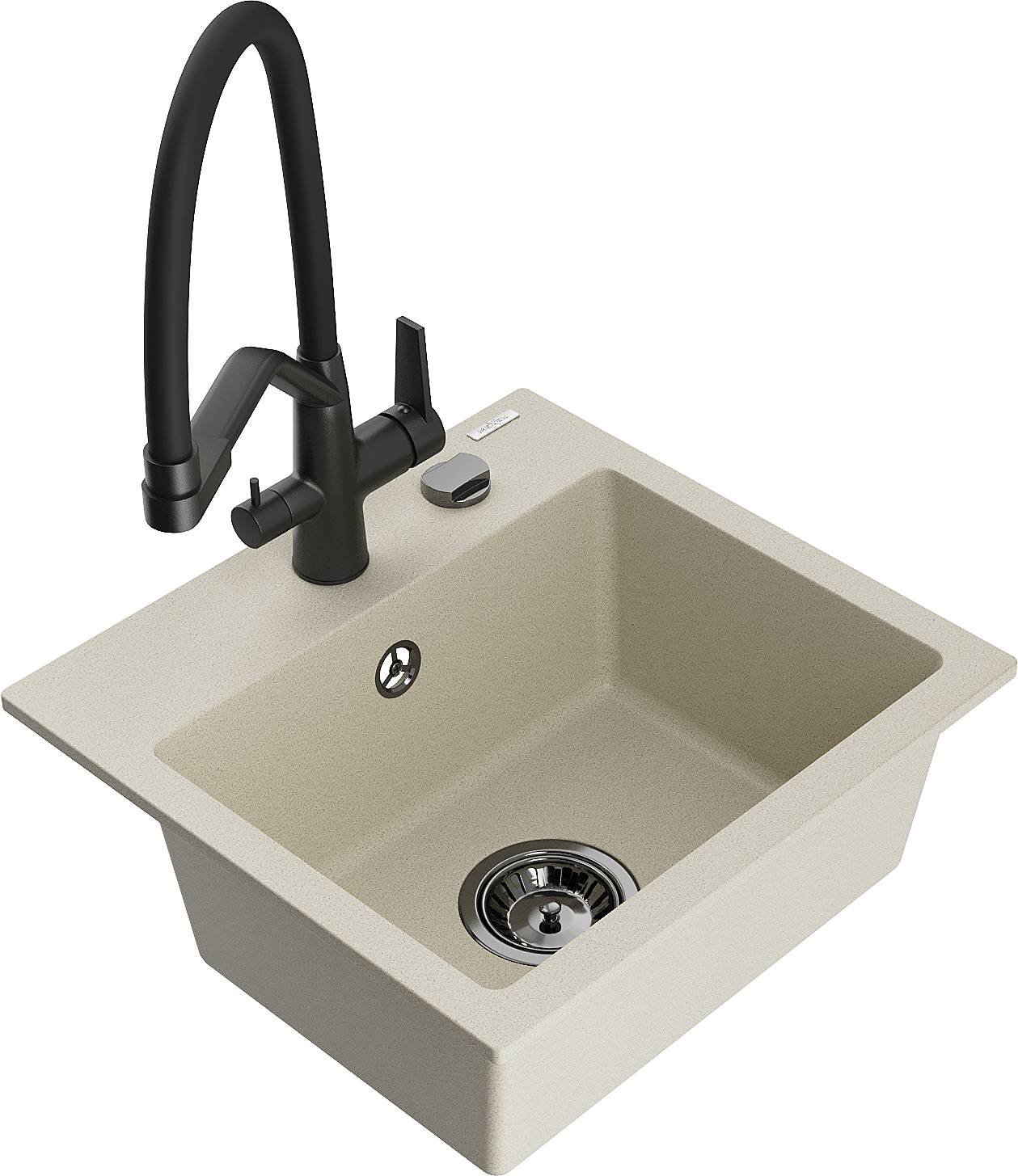 Mexen Milo granieten gootsteen 1-komor met keukenkraan Duo, beige - 6505-69-671701-70-B