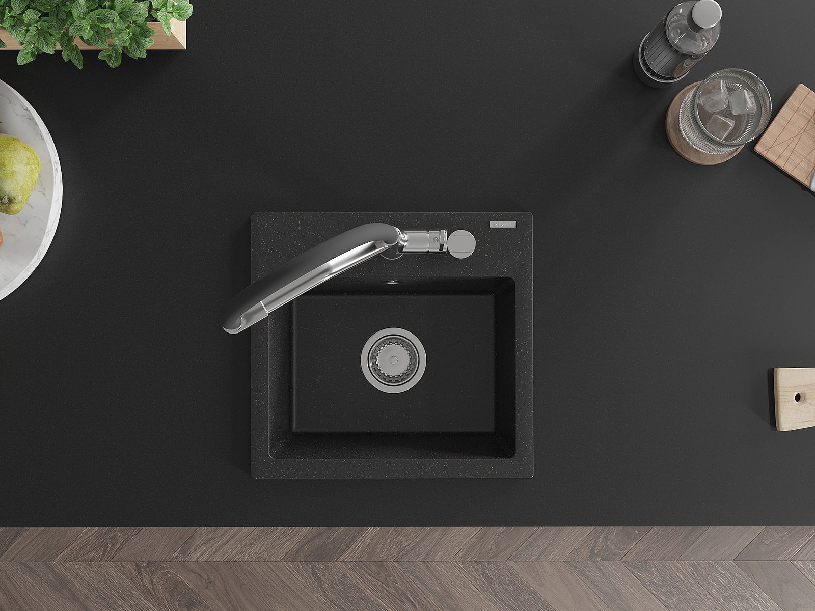 Mexen Milo granieten gootsteen 1-compartiment met keukenkraan Duo, zwart/zilver metallic - 6505-73-671701-07