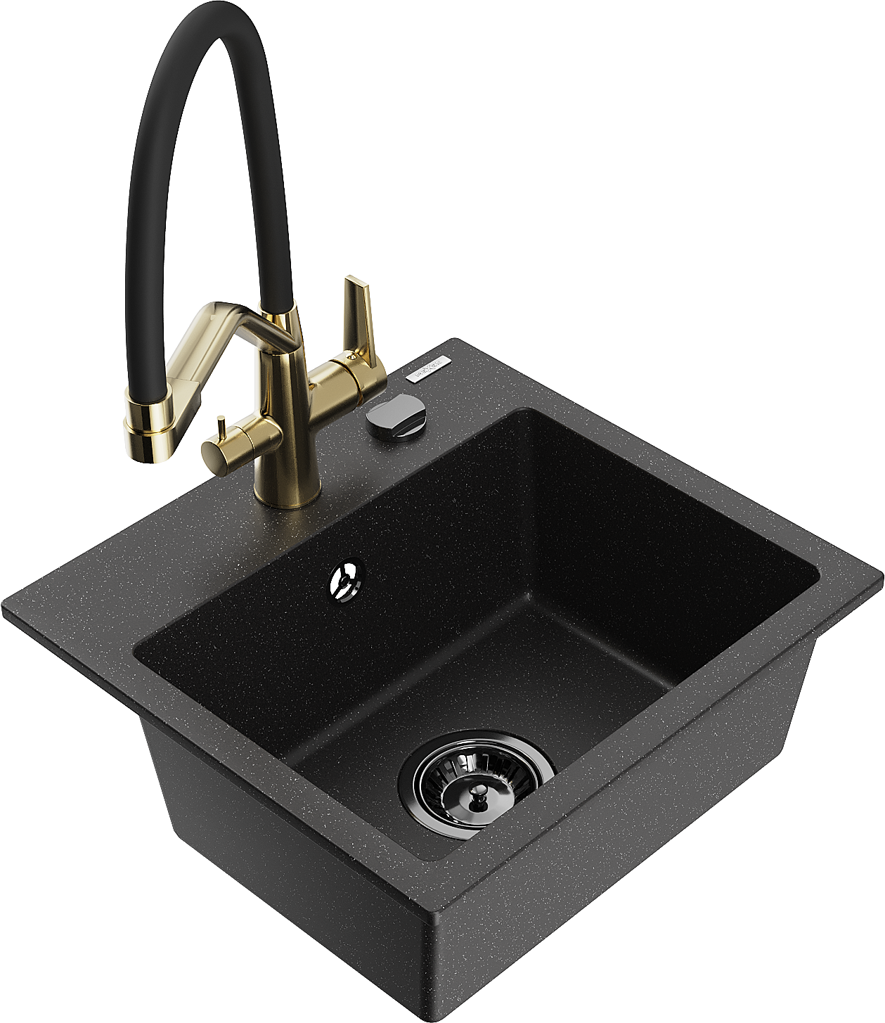 Mexen Milo granieten gootsteen 1-komor met Duo keukenmengkraan, zwart/zilver metallic - 6505-73-671701-57-B