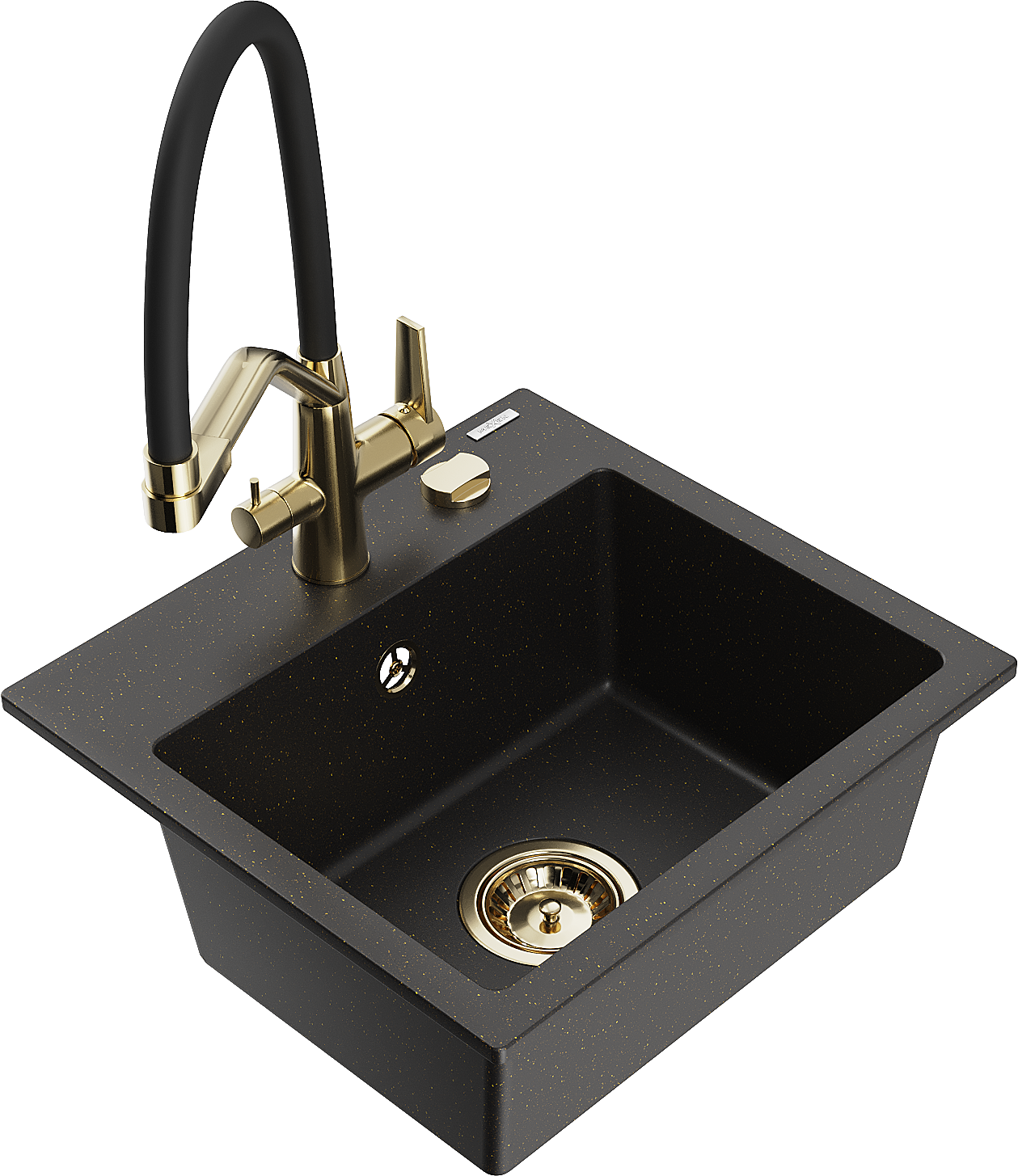 Mexen Milo granieten gootsteen 1-komor met keukenmengkraan Duo, zwart/goud metallic - 6505-75-671701-57-G