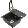 Mexen Enzo granieten gootsteen 1-kompartiment met afdruiprek en keukenkraan Duo, zwart/zilver metallic - 6506-73-671701-57-G
