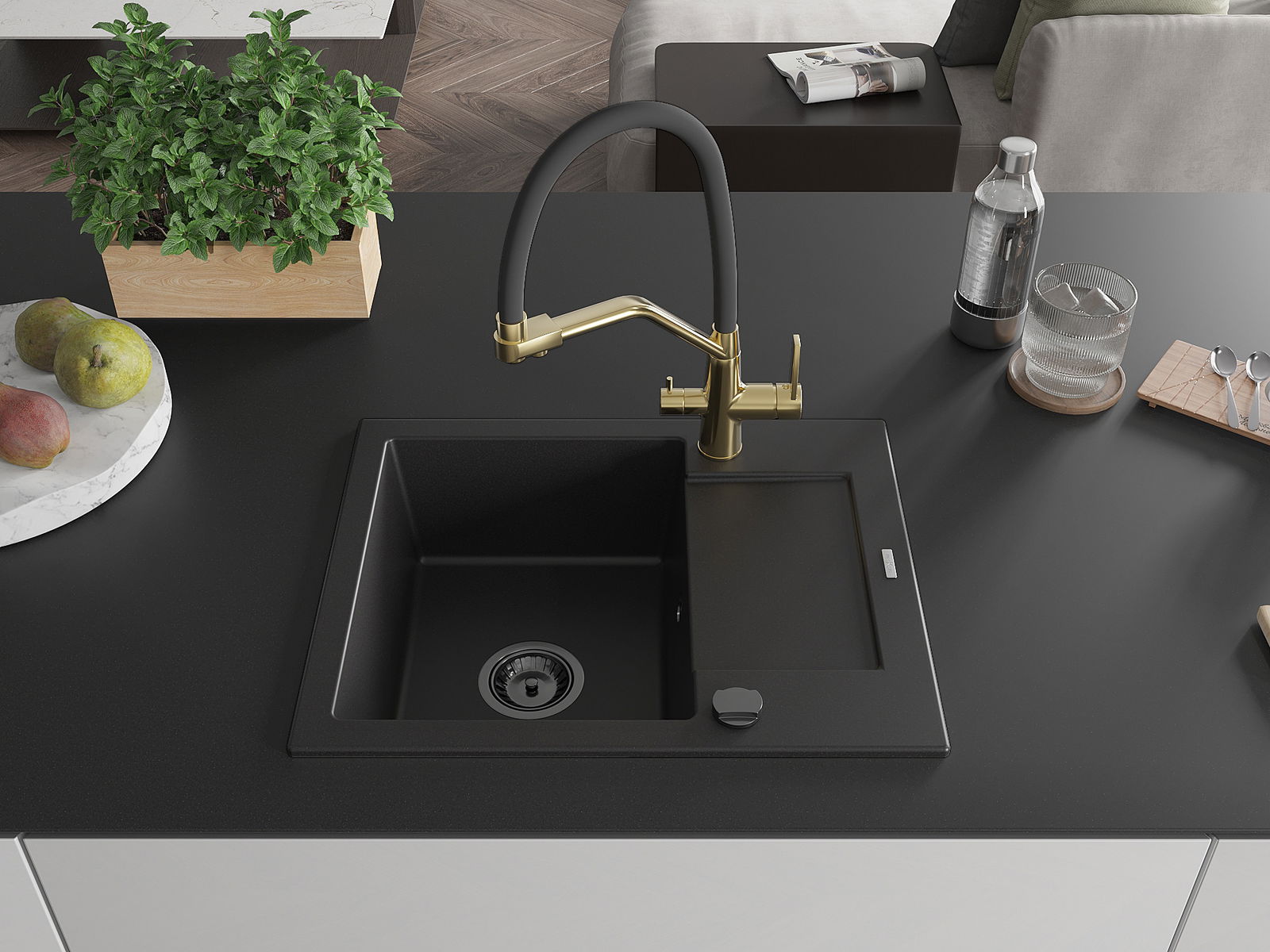 De gootsteen is gemaakt van hoogwaardig graniet. Het vormt een elegante en vooral praktische aanvulling op elke keuken, ongeacht de stijl. De hoge kwaliteit en duurzaamheid van graniet zorgen voor jarenlang gebruik.