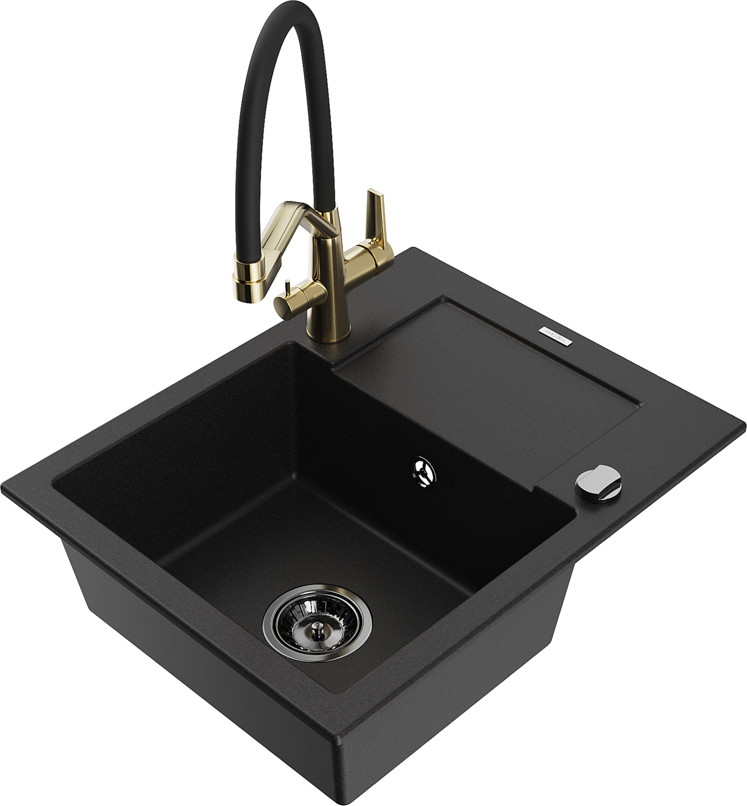 Mexen Enzo granieten spoelbak 1-komers met afdruiprek en Duo keukenkraan, zwart - 6506-77-671701-57-B