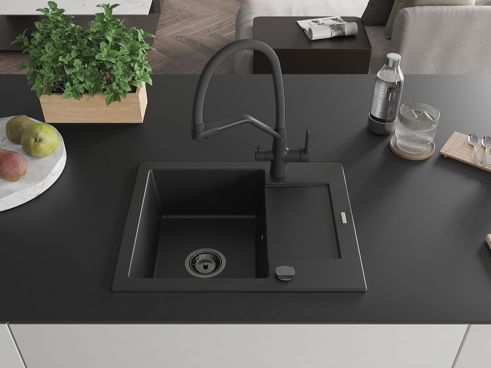 De gootsteen is gemaakt van hoogwaardig graniet. Het vormt een elegante en vooral praktische aanvulling op elke keuken, ongeacht de stijl. De hoge kwaliteit en duurzaamheid van graniet zorgen voor jarenlang gebruik.