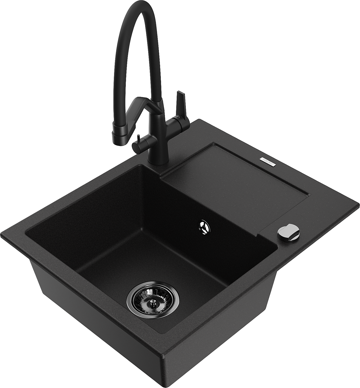 Mexen Enzo granieten gootsteen 1-komorige met afdruiprek en keukenmengkraan Duo, zwart - 6506-77-671701-70-B