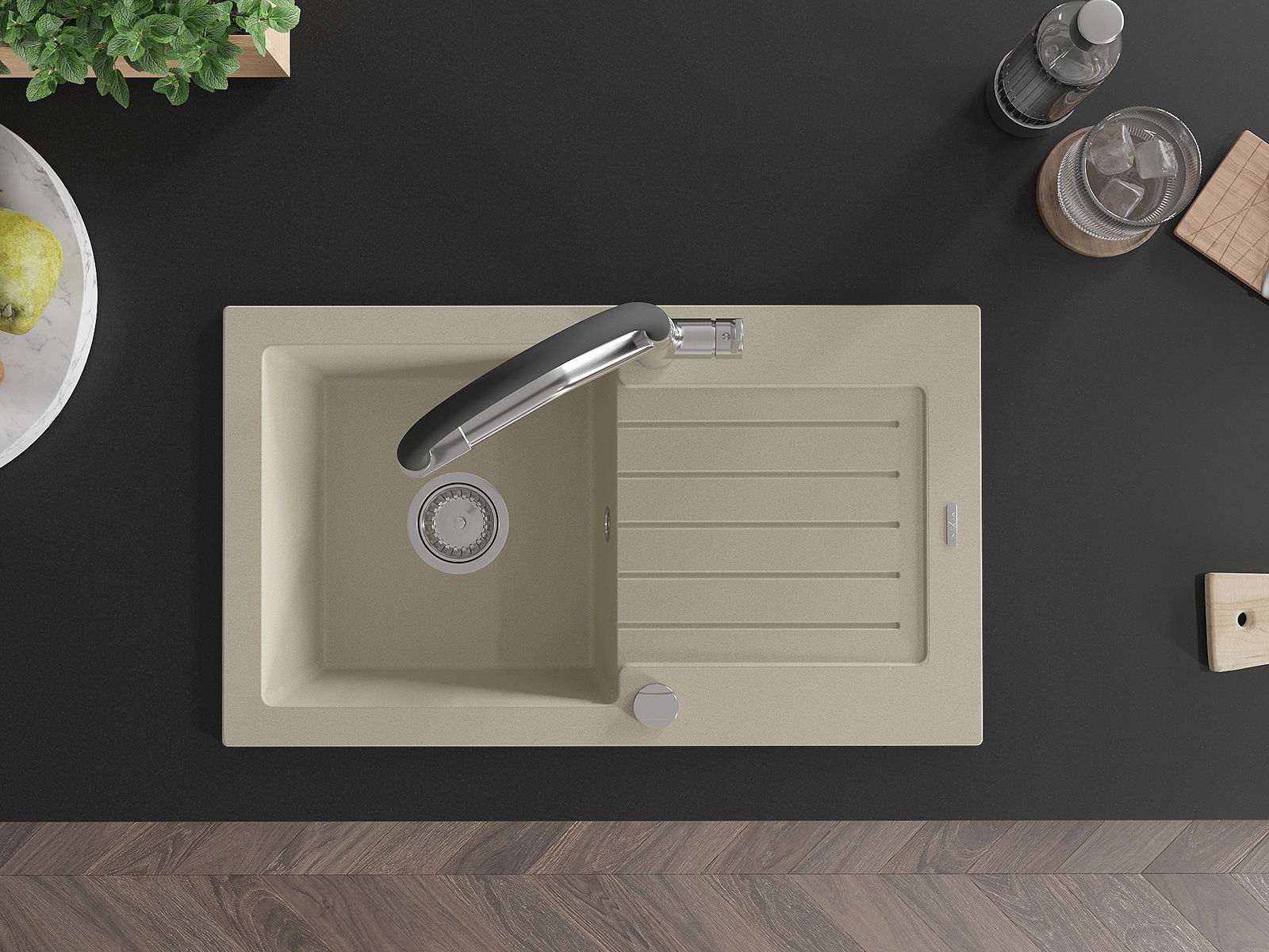 De gootsteen is gemaakt van hoogwaardig graniet. Het vormt een elegante en vooral praktische aanvulling op elke keuken, ongeacht de stijl. De hoge kwaliteit en duurzaamheid van graniet zorgen voor jarenlang gebruik.