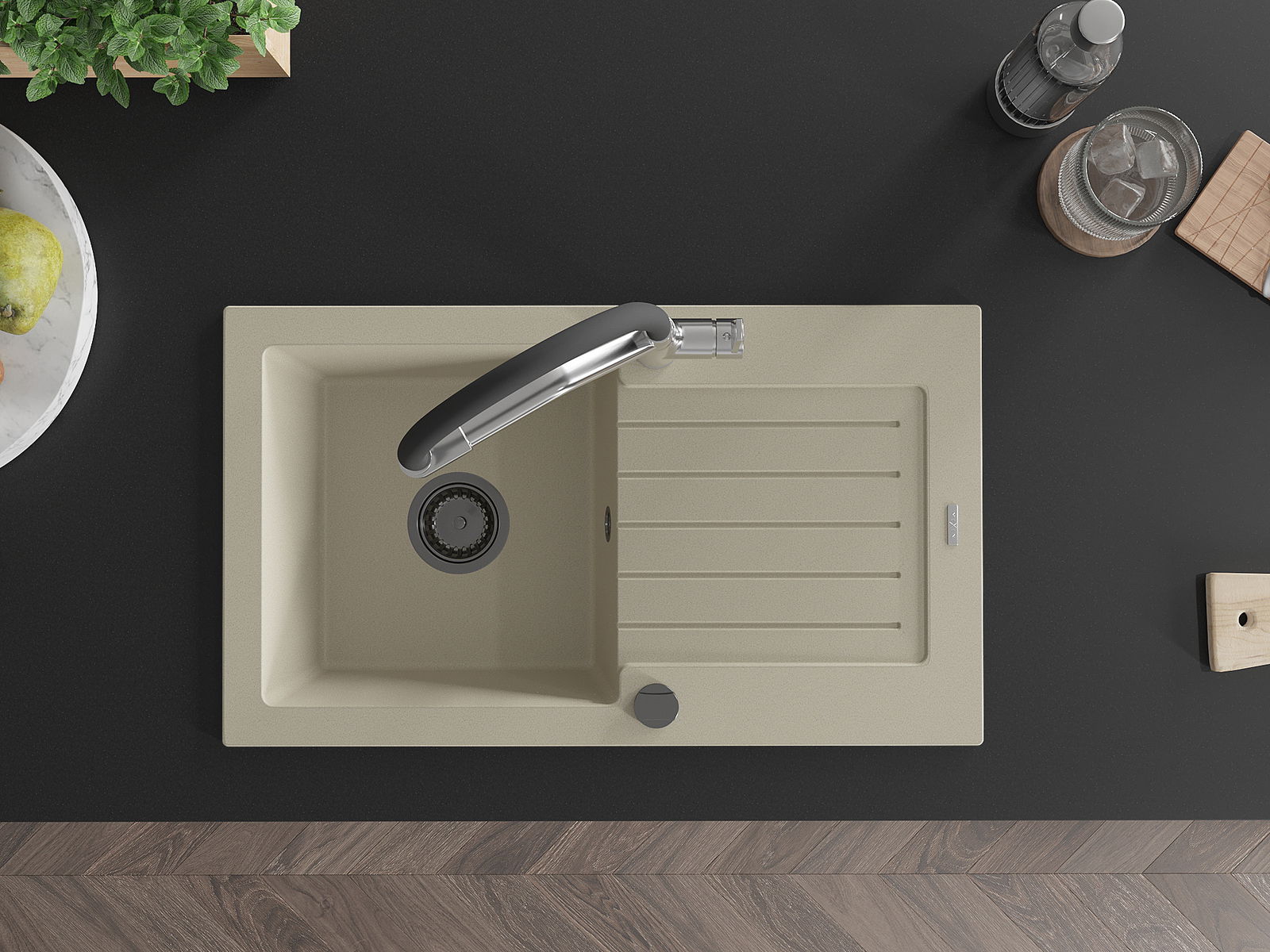 De gootsteen is gemaakt van hoogwaardig graniet. Het vormt een elegante en vooral praktische aanvulling op elke keuken, ongeacht de stijl. De hoge kwaliteit en duurzaamheid van graniet zorgen voor jarenlang gebruik.