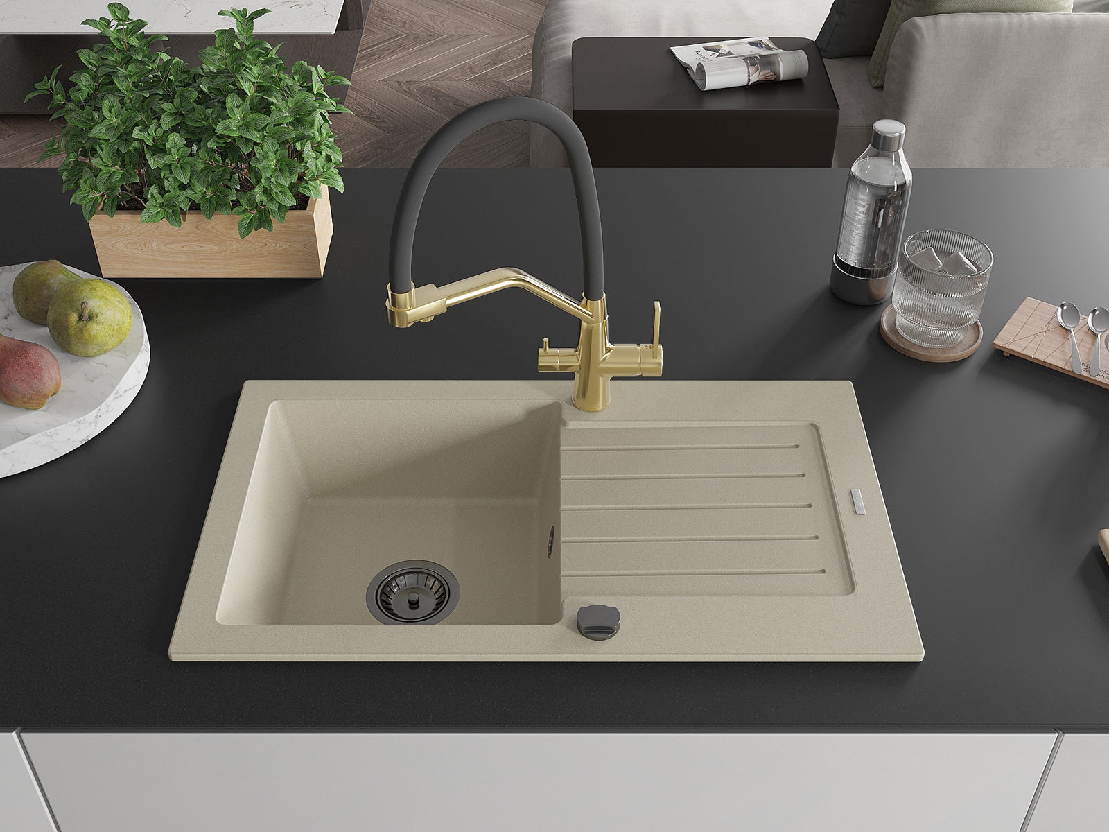 De gootsteen is gemaakt van hoogwaardig graniet. Het vormt een elegante en vooral praktische aanvulling op elke keuken, ongeacht de stijl. De hoge kwaliteit en duurzaamheid van graniet zorgen voor jarenlang gebruik.
