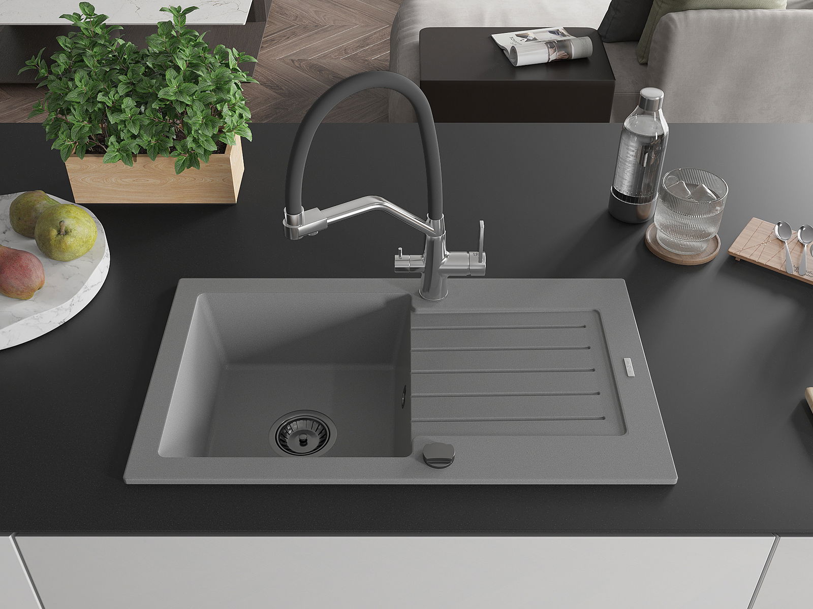 De gootsteen is gemaakt van hoogwaardig graniet. Het vormt een elegante en vooral praktische aanvulling op elke keuken, ongeacht de stijl. De hoge kwaliteit en duurzaamheid van graniet zorgen voor jarenlang gebruik.
