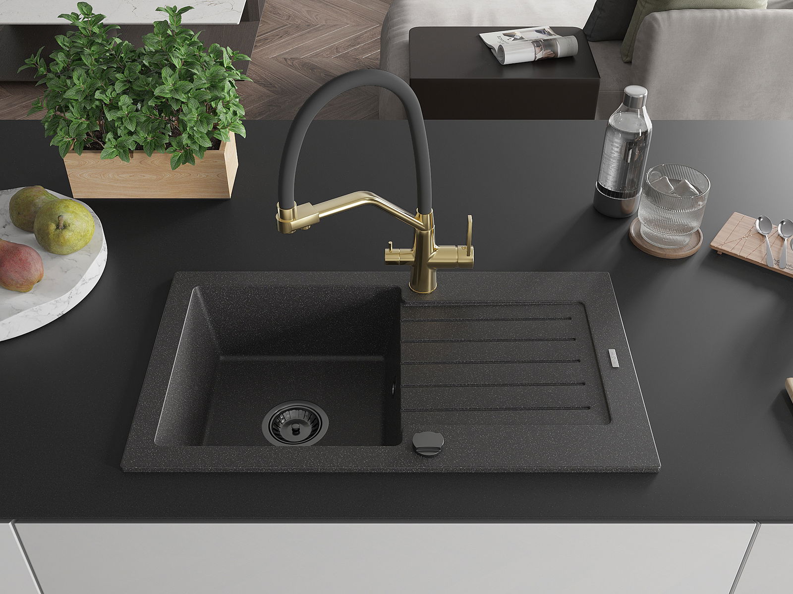 De gootsteen is gemaakt van hoogwaardig graniet. Het vormt een elegante en vooral praktische aanvulling op elke keuken, ongeacht de stijl. De hoge kwaliteit en duurzaamheid van graniet zorgen voor jarenlang gebruik.