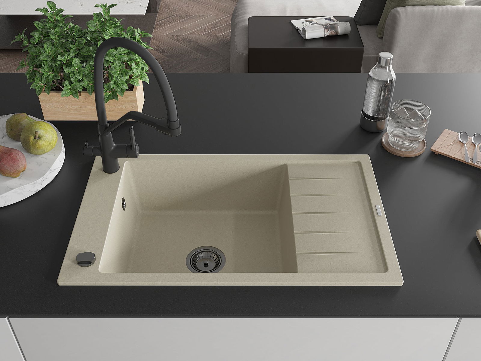 De gootsteen is gemaakt van hoogwaardig graniet. Het vormt een elegante en vooral praktische aanvulling op elke keuken, ongeacht de stijl. De hoge kwaliteit en duurzaamheid van graniet zorgen voor jarenlang gebruik.