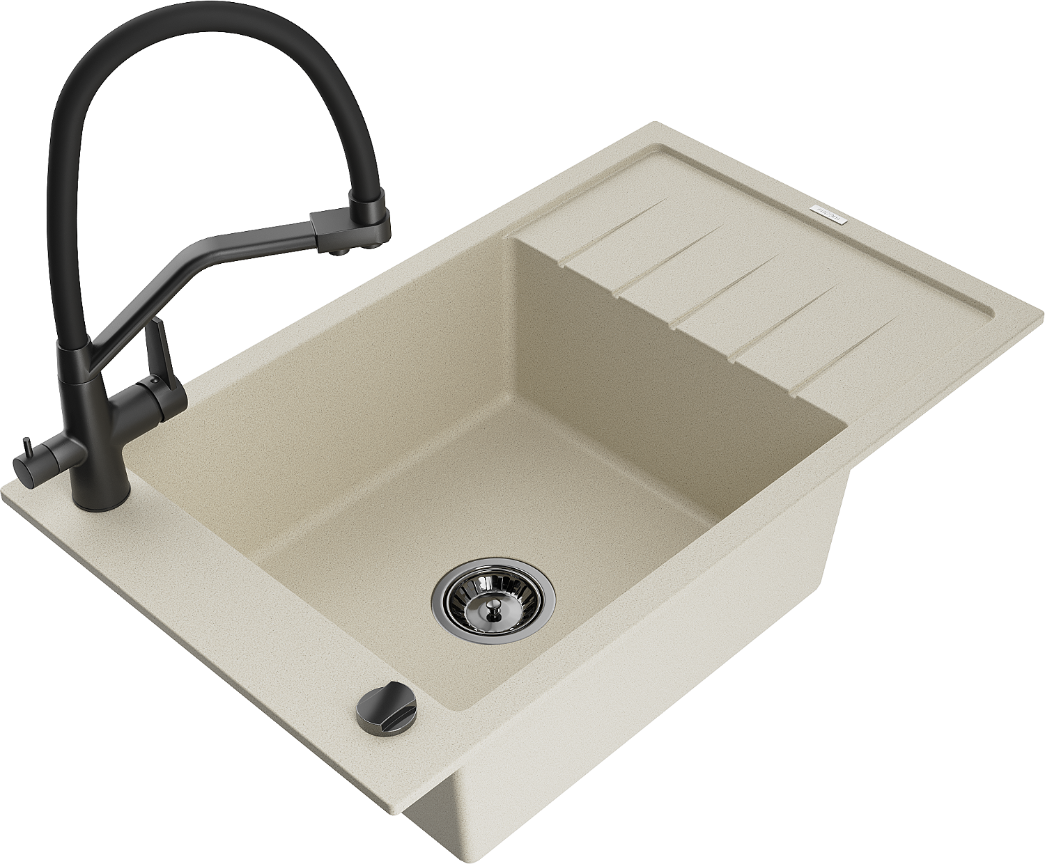 Mexen Elias granieten gootsteen 1-bak met afdruiprek en keukenmengkraan Duo, beige - 6511-69-671701-70-B