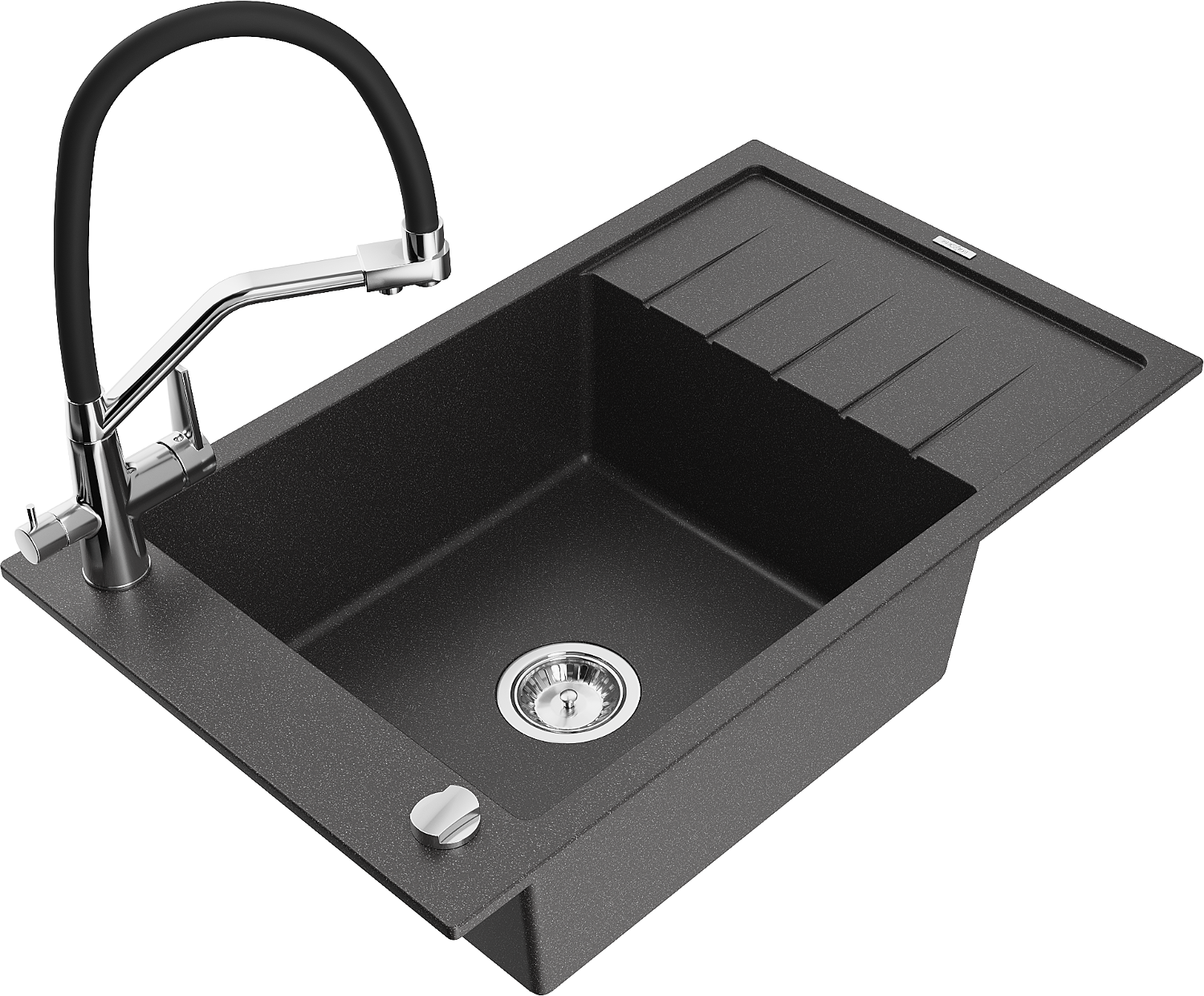 Mexen Elias granieten spoelbak 1-kamer met afdruiprek en keukenmengkraan Duo, zwart gespikkeld - 6511-76-671701-07