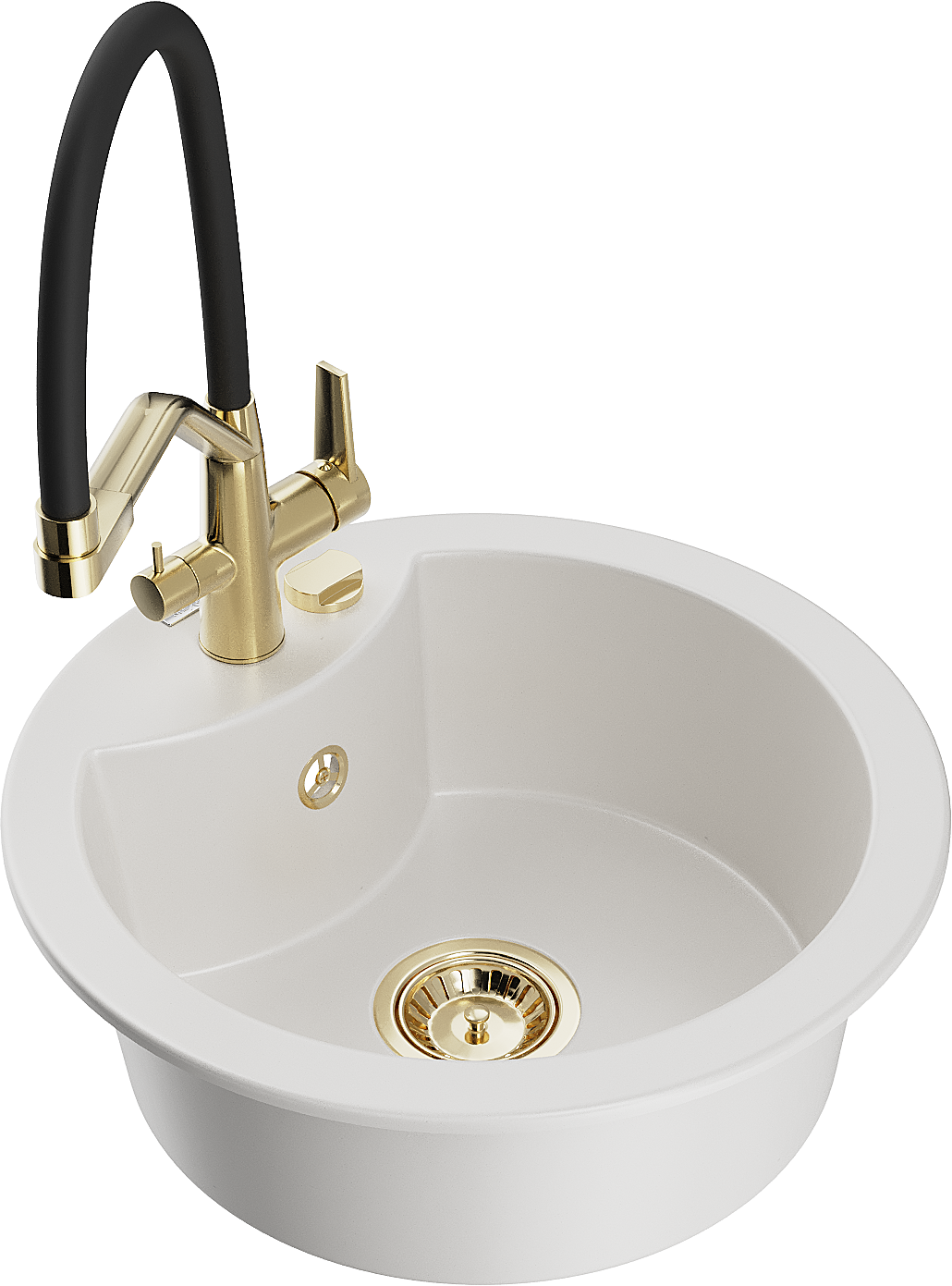 De gootsteen heeft een voorgeboord gat met een diameter van 35 mm dat zelf kan worden uitgeslagen. Het kan onder andere worden gebruikt voor het installeren van een dispenser voor vloeistof, die de aanwezigheid van plastic flessen in de keuken elimineert en een elegante afwerking geeft.