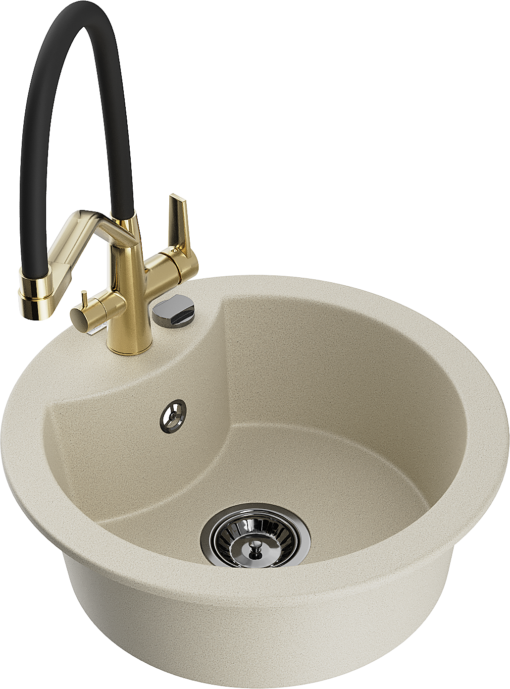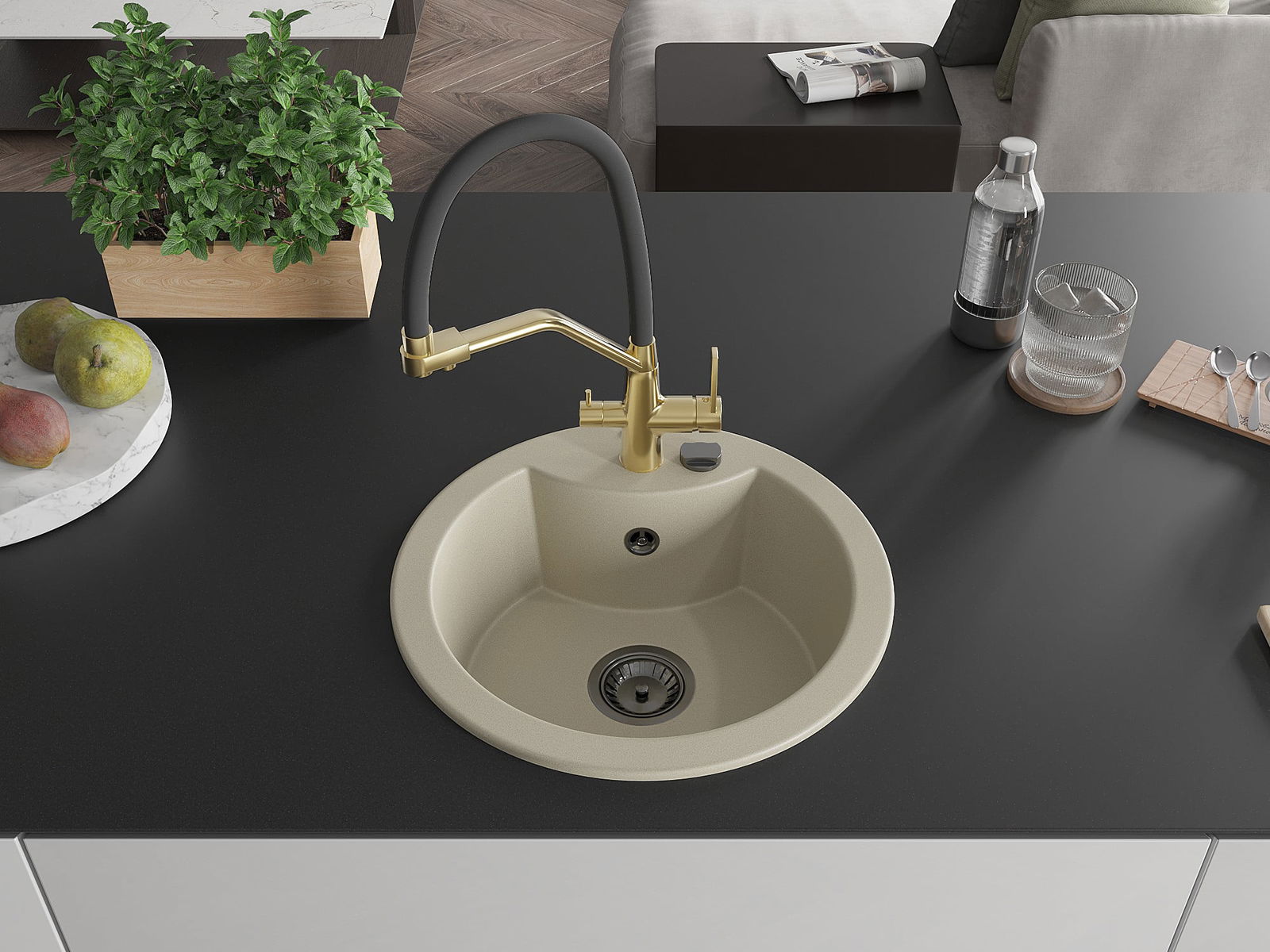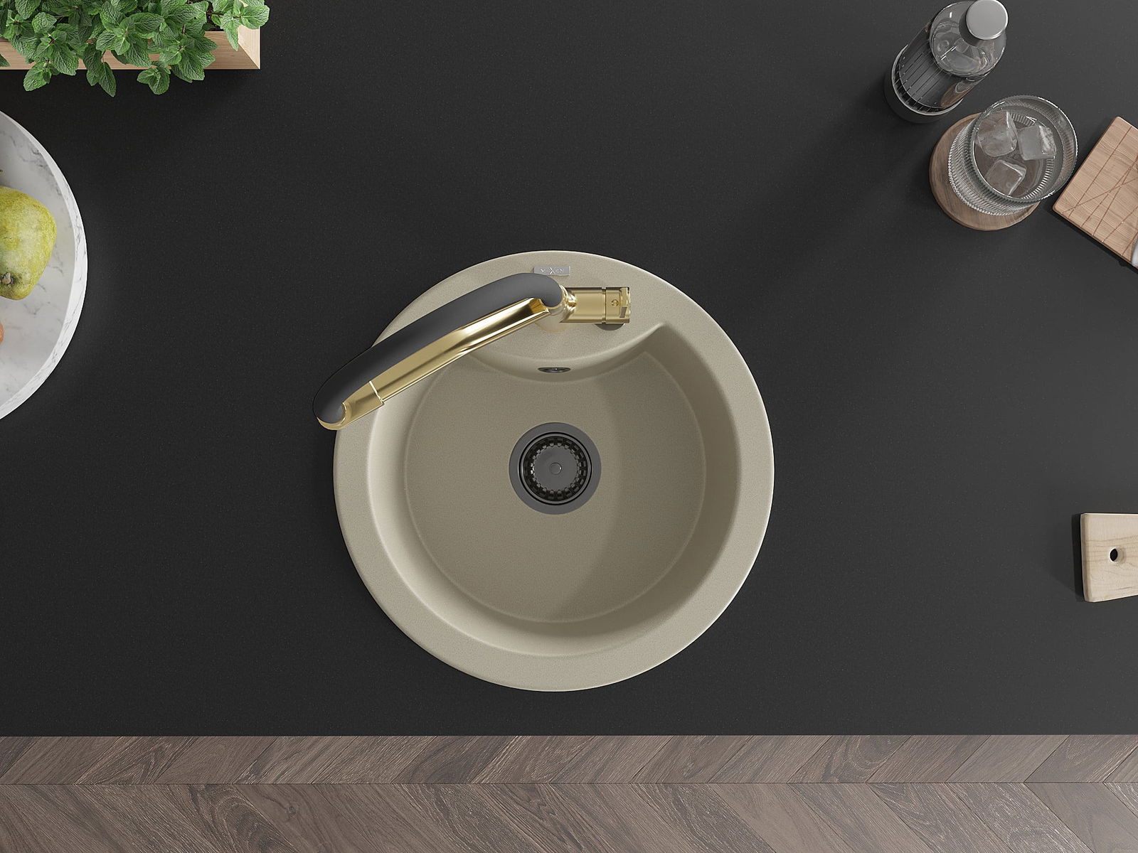 Mexen Diego granieten gootsteen 1-komor met keukenmengkraan Duo, beige - 6512-69-671701-57-B