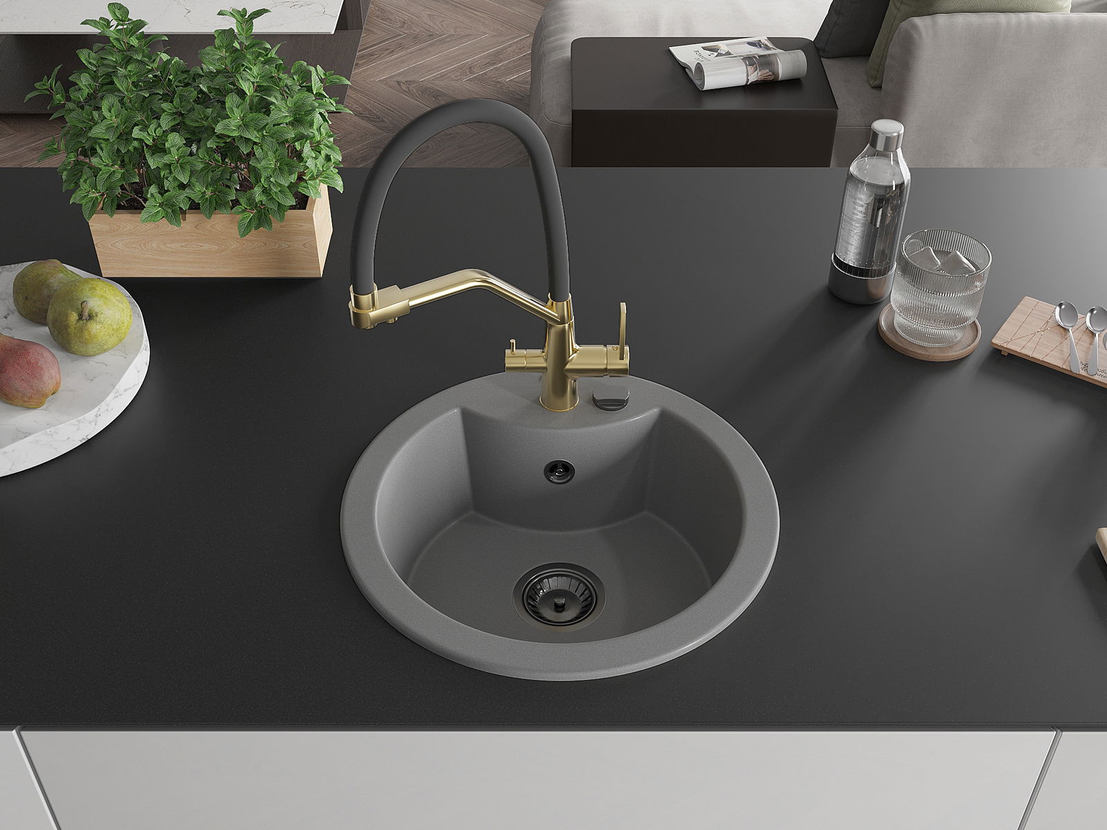 De gootsteen is gemaakt van hoogwaardig graniet. Het vormt een elegante en vooral praktische aanvulling op elke keuken, ongeacht de stijl. De hoge kwaliteit en duurzaamheid van graniet zorgen voor jarenlang gebruik.