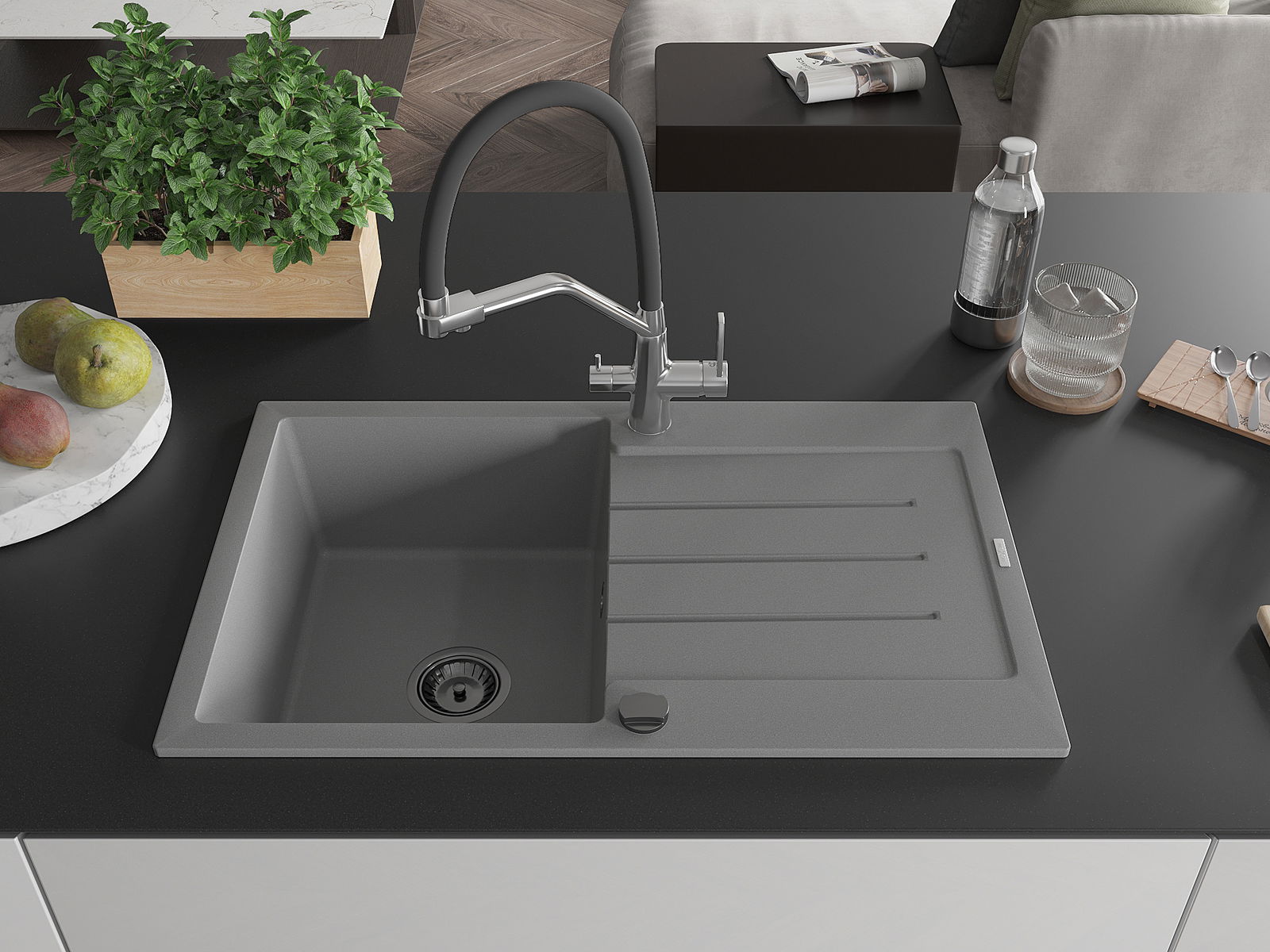 De gootsteen is gemaakt van hoogwaardig graniet. Het vormt een elegante en vooral praktische aanvulling op elke keuken, ongeacht de stijl. De hoge kwaliteit en duurzaamheid van graniet zorgen voor jarenlang gebruik.