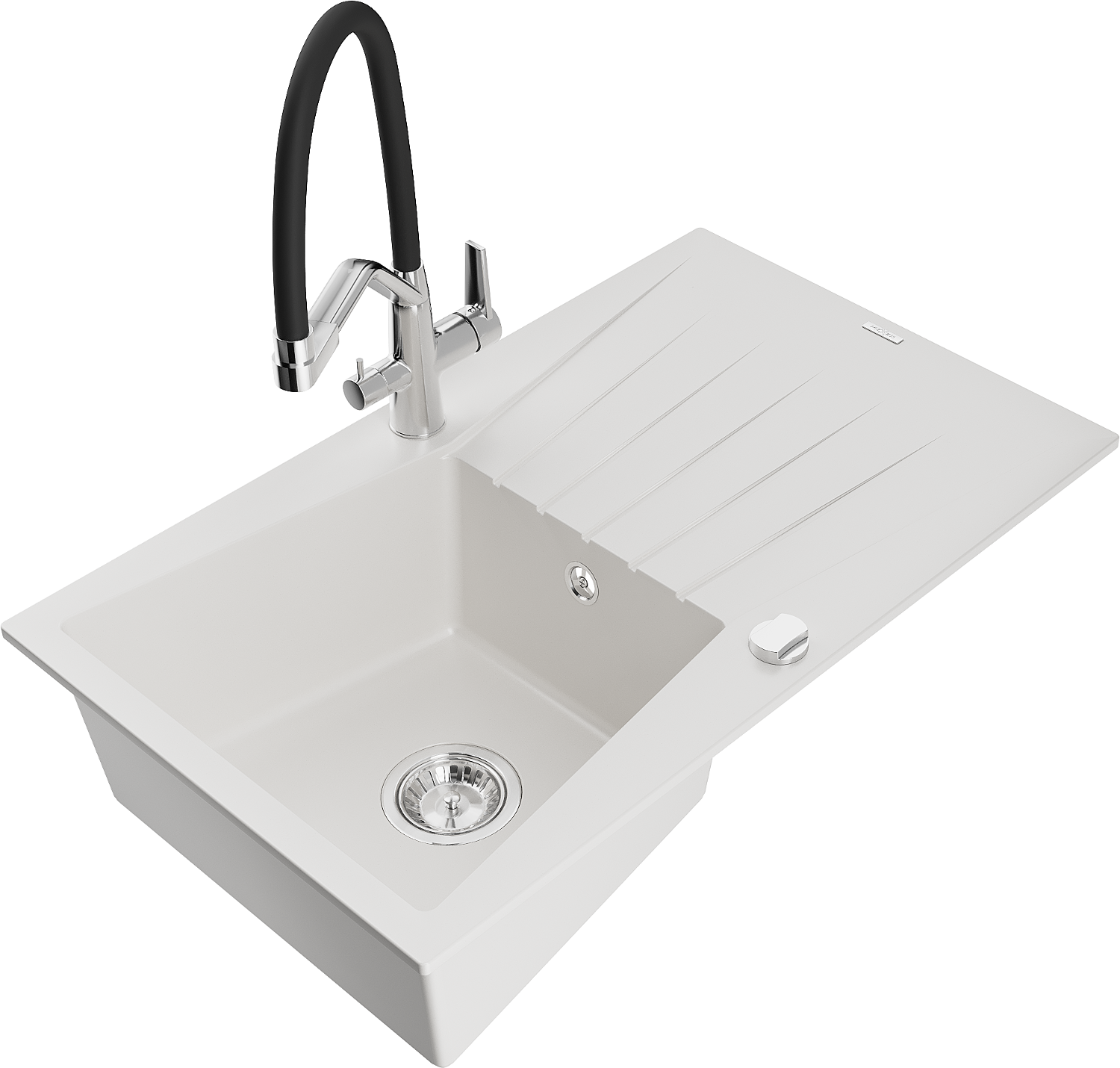 Mexen Cesar granieten spoelbak met 1 bak, afdruiprek en Duo keukenkraan, wit - 6514-20-671701-07