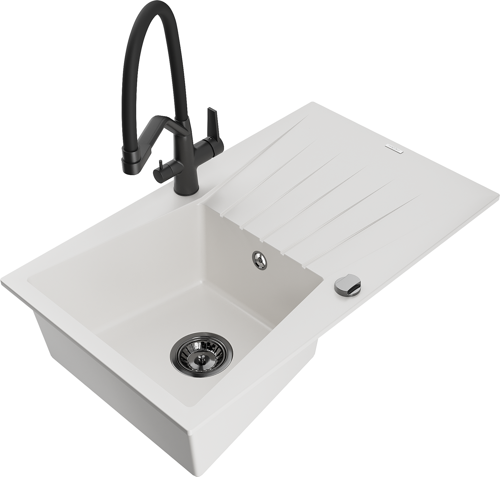 Mexen Cesar granieten spoelbak 1-komorige met afdruiprek en keukenkraan Duo, wit - 6514-20-671701-70-B