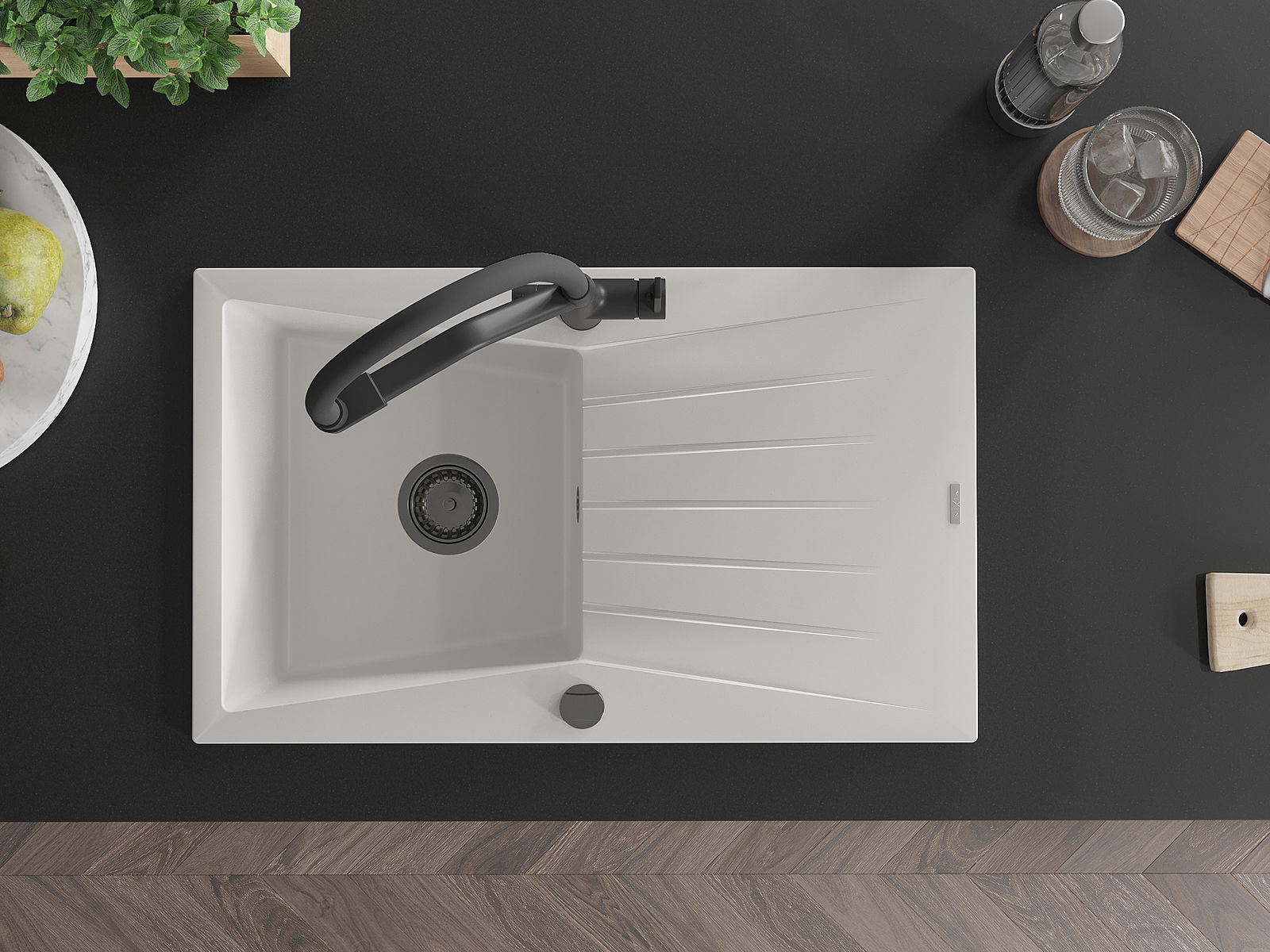 De gootsteen is gemaakt van hoogwaardig graniet. Het vormt een elegante en vooral praktische aanvulling op elke keuken, ongeacht de stijl. De hoge kwaliteit en duurzaamheid van graniet zorgen voor jarenlang gebruik.