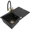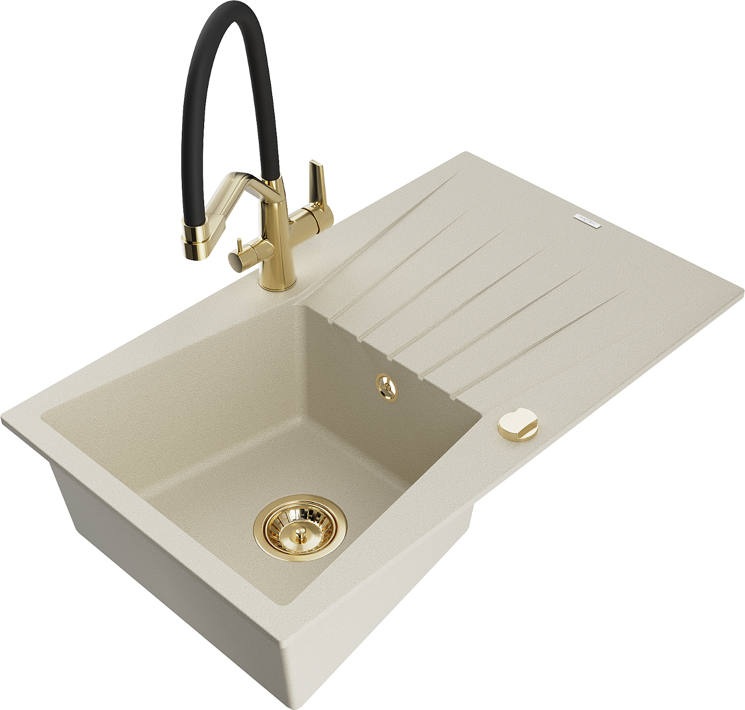 Mexen Cesar granieten gootsteen 1-komors met afdruiprek en keukenkraan Duo, beige - 6514-69-671701-57-G