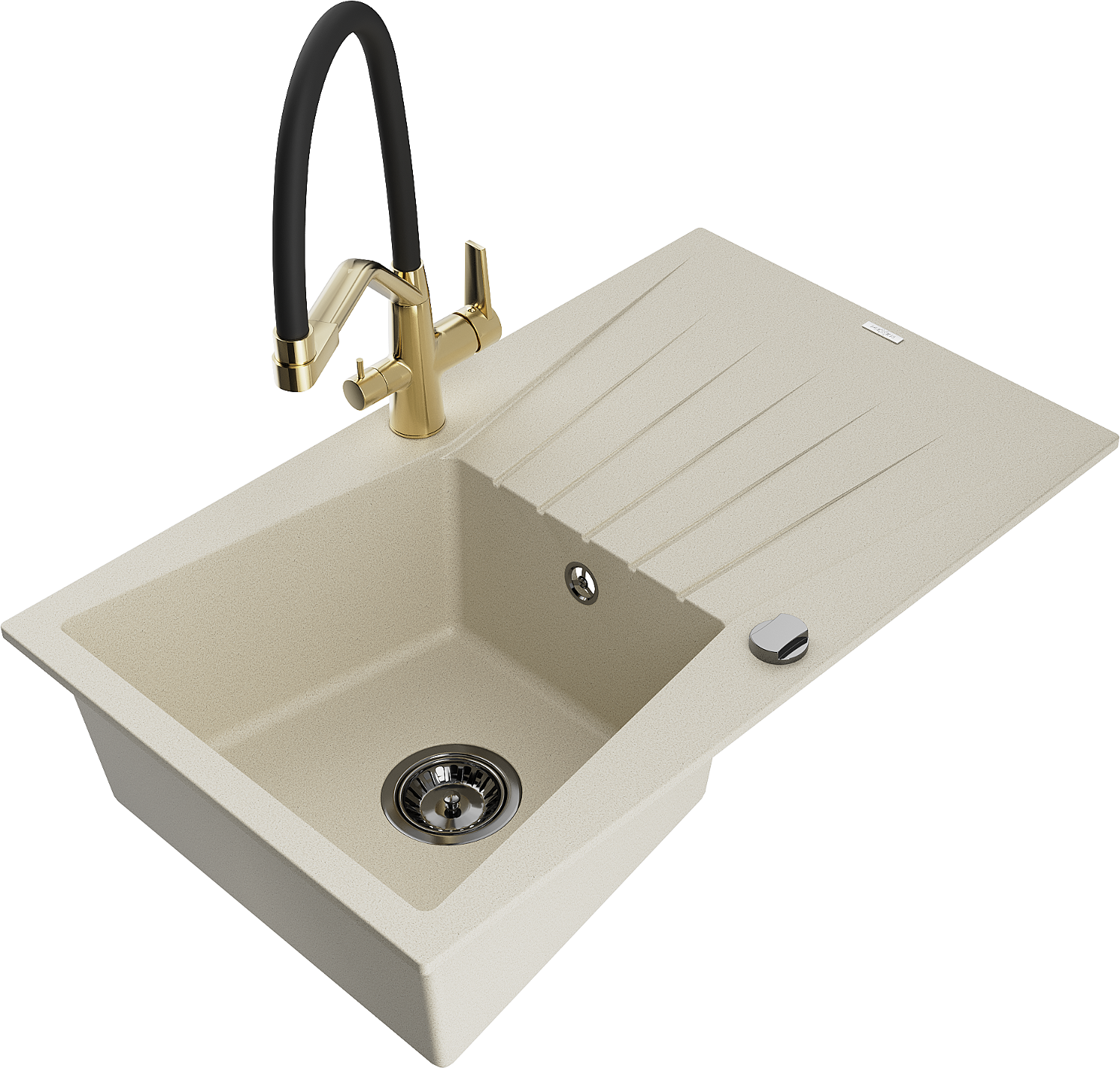 Mexen Cesar granieten spoelbak met 1 bak met afdruiprek en keukenkraan Duo, beige - 6514-69-671701-57-B