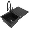 Mexen Cesar granieten spoelbak 1-komors met afdruiprek en duokeukenkraan, zwart/gouden metallic - 6514-75-671701-07-B