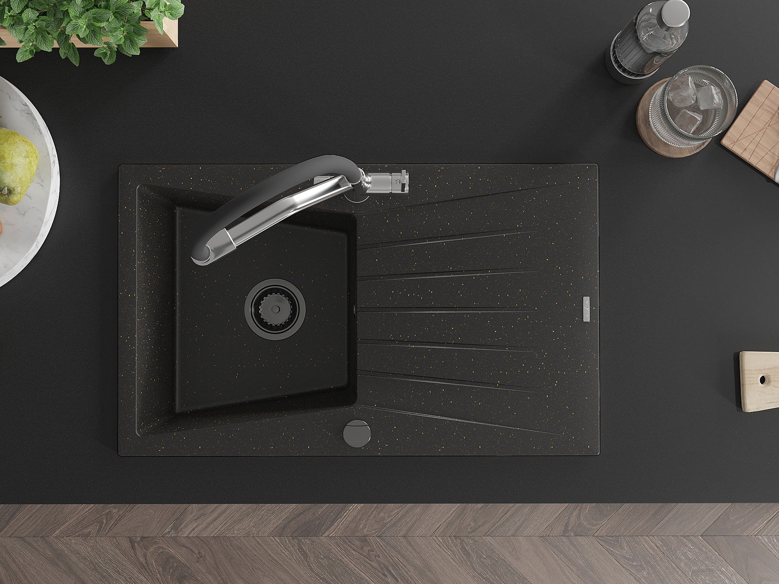 De gootsteen is gemaakt van hoogwaardig graniet. Het vormt een elegante en vooral praktische aanvulling op elke keuken, ongeacht de stijl. De hoge kwaliteit en duurzaamheid van graniet zorgen voor jarenlang gebruik.