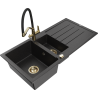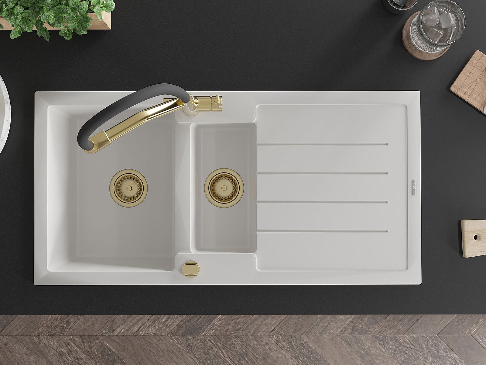 Mexen Andres granieten spoelbak 1,5-komers met afdruipgedeelte en keukenkraan Duo, wit - 6515-20-671701-57-G