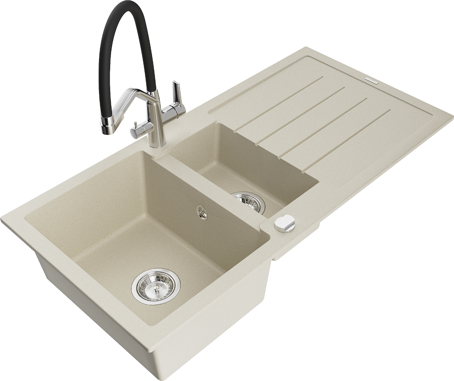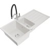 Mexen Andres granieten gootsteen 1,5-bak met afdruiprek en keukenmengkraan Duo, beige - 6515-69-671701-07