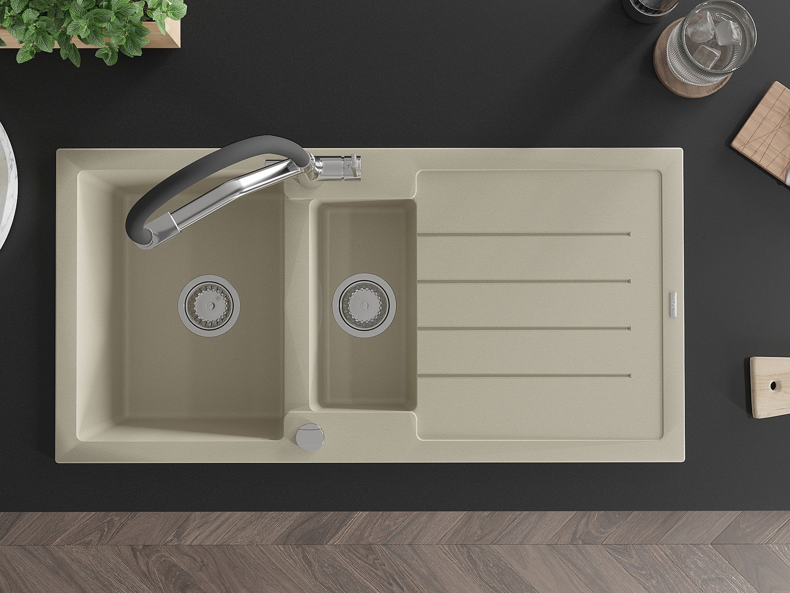 De gootsteen is gemaakt van hoogwaardig graniet. Het vormt een elegante en vooral praktische aanvulling op elke keuken, ongeacht de stijl. De hoge kwaliteit en duurzaamheid van graniet zorgen voor jarenlang gebruik.