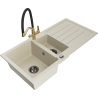 Het oppervlak van de gootsteen is bestand tegen vlekken en verkleuringen, waardoor het gemakkelijk schoon te houden is en zijn kleur behoudt gedurende een lange gebruiksperiode. Een esthetische en praktische aanvulling op elke keuken.