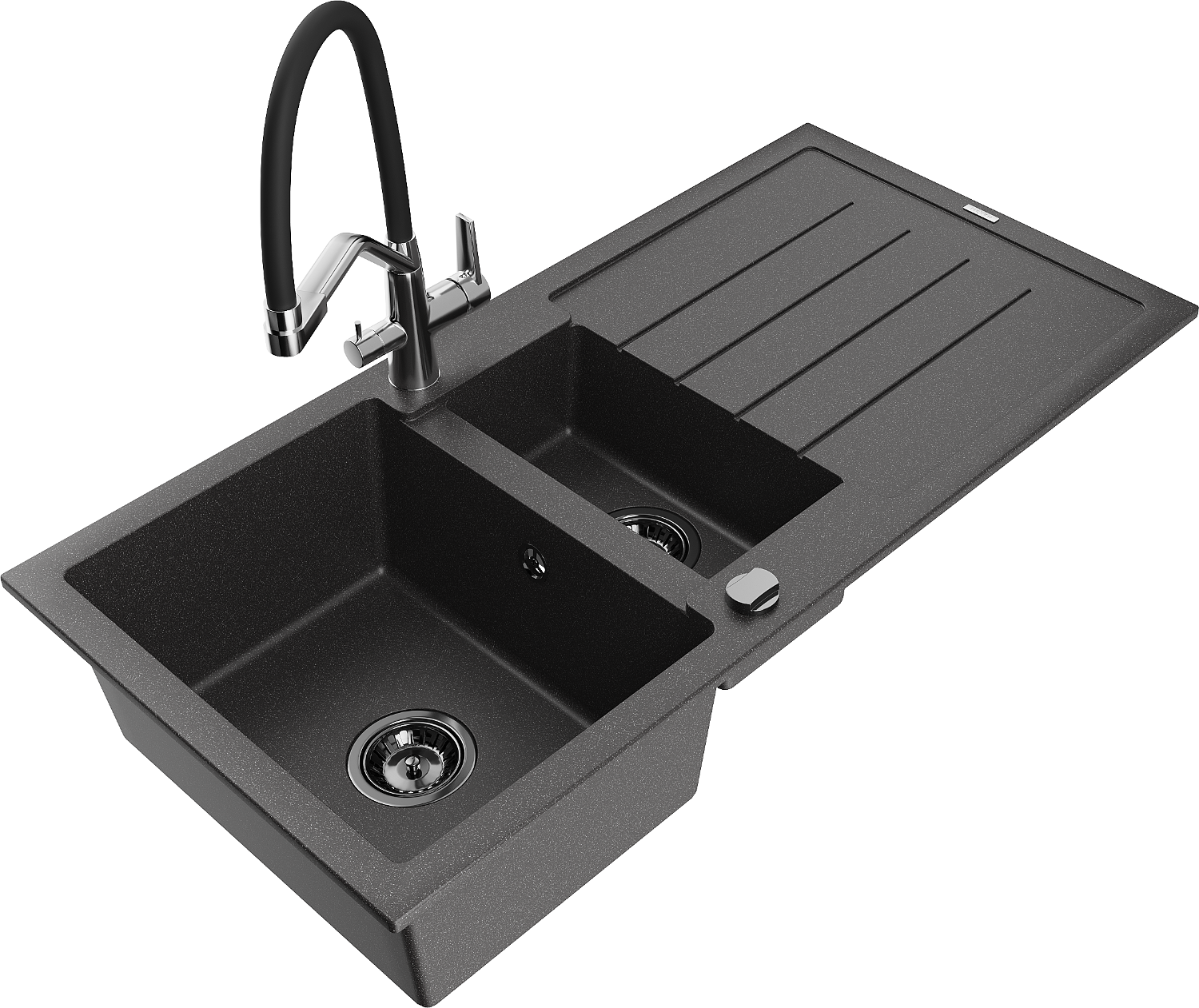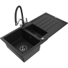 Mexen Andres granieten gootsteen 1,5-komers met afdruiprek en keukenmengkraan Duo, zwart gespikkeld - 6515-76-671701-07-B