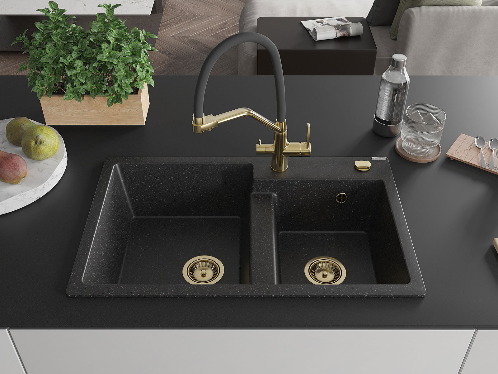 De gootsteen is gemaakt van hoogwaardig graniet. Het vormt een elegante en vooral praktische aanvulling op elke keuken, ongeacht de stijl. De hoge kwaliteit en duurzaamheid van graniet zorgen voor jarenlang gebruik.