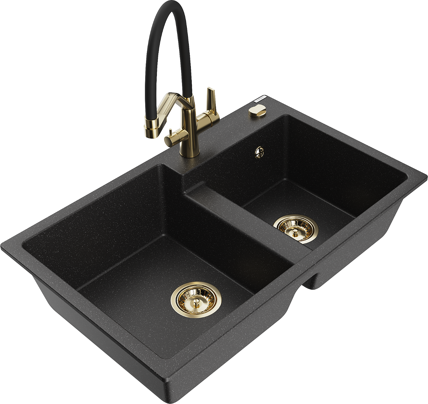 Mexen Tomas granieten gootsteen 2-kamer met keukenkraan Duo, zwart/zilver metallic - 6516-73-671701-57-G