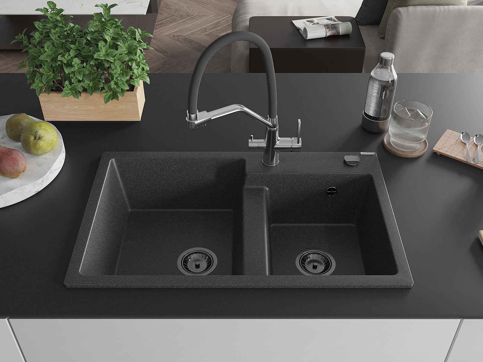 De gootsteen is gemaakt van hoogwaardig graniet. Het vormt een elegante en vooral praktische aanvulling op elke keuken, ongeacht de stijl. De hoge kwaliteit en duurzaamheid van graniet zorgen voor jarenlang gebruik.