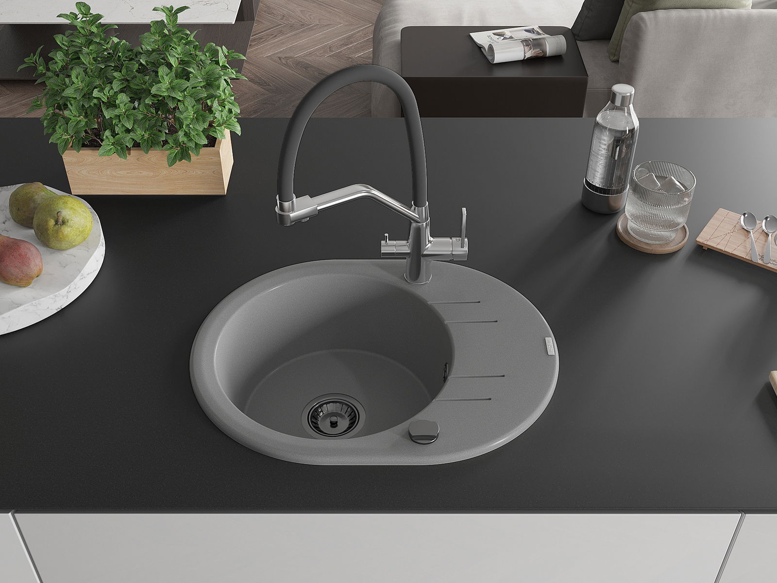 De spoelbak is gemaakt van hoogwaardig graniet. Het is een elegante en vooral praktische toevoeging aan elke keuken, ongeacht de stijl. De hoge kwaliteit en duurzaamheid van het graniet garanderen jarenlang gebruik.