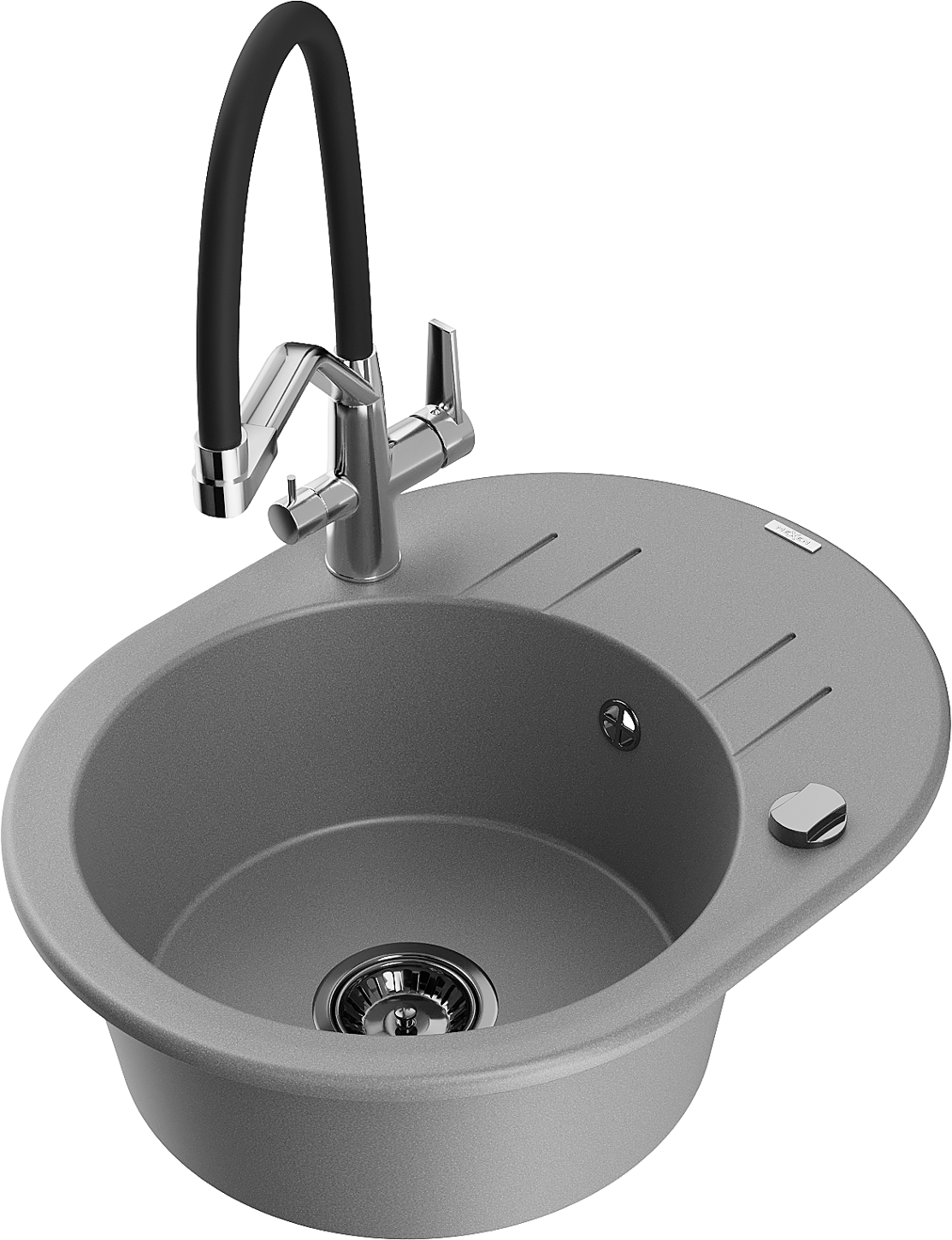 Mexen Kevin granieten spoelbak met 1 bak en Duo keukenkraan, grijs - 6517-71-671701-07-B