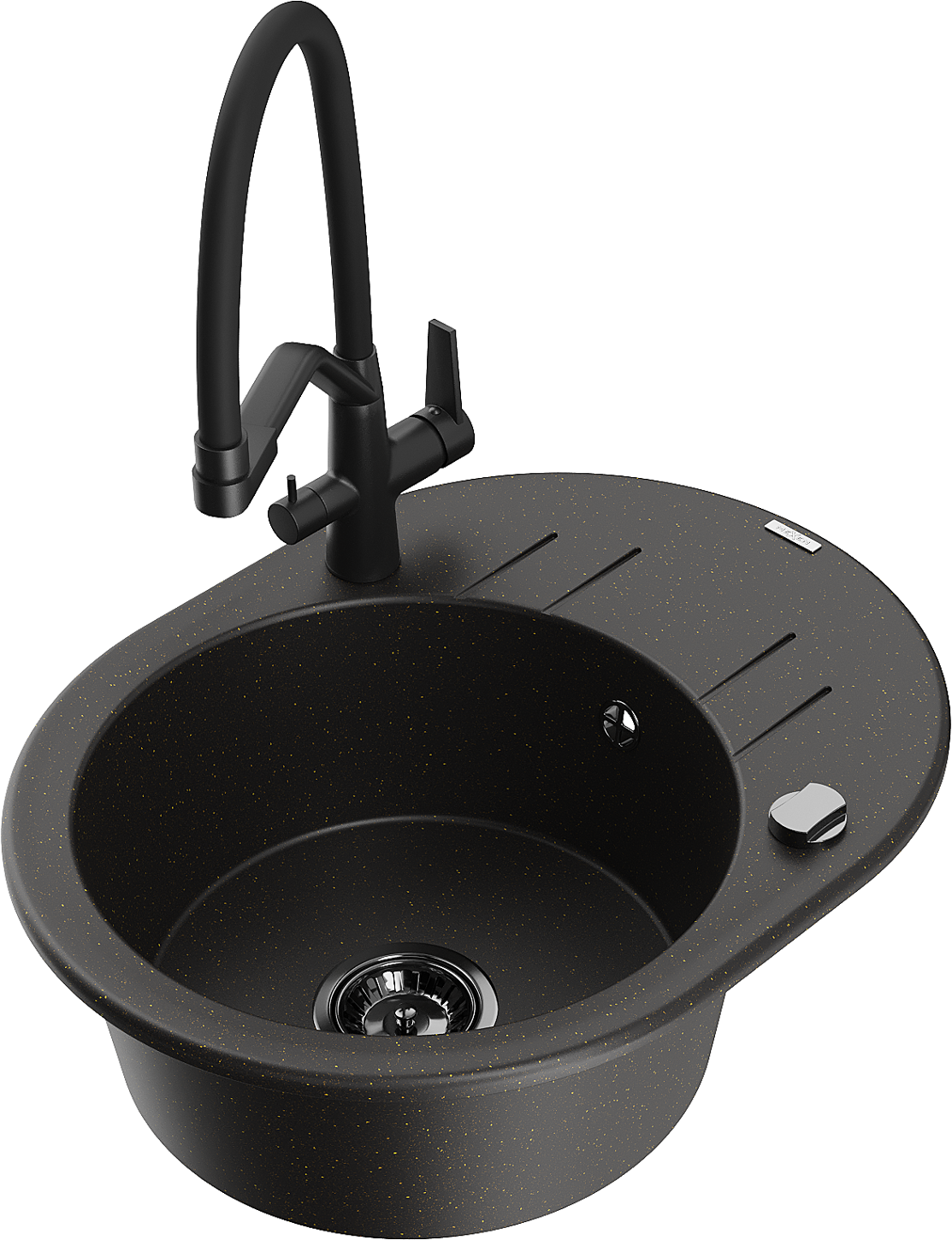 Mexen Kevin granieten spoelbak met 1 bak en keukenkraan Duo, zwart/goud metallic - 6517-75-671701-70-B
