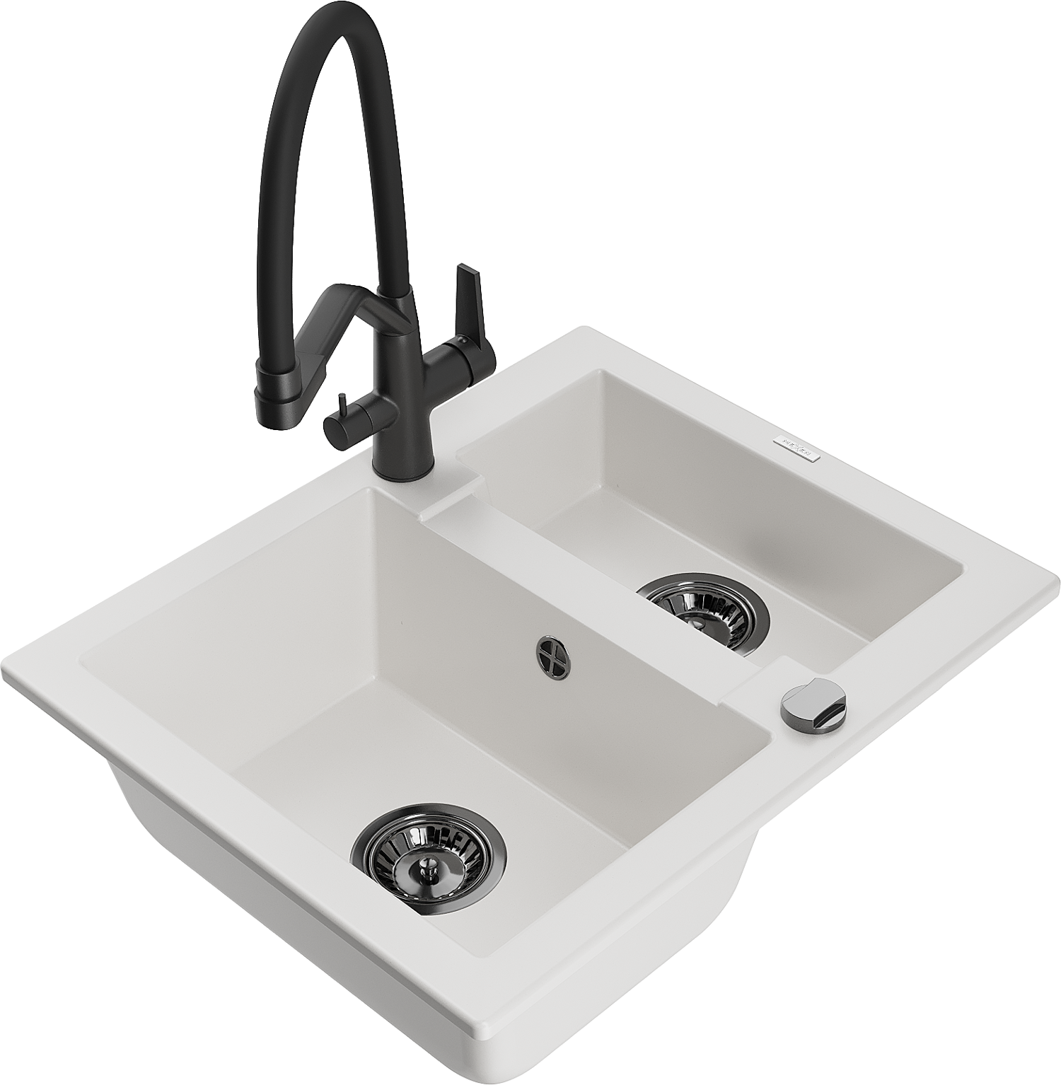 Mexen Carlos granieten spoelbak 1,5-komers met Duo keukenmengkraan, wit - 6518-20-671701-70-B