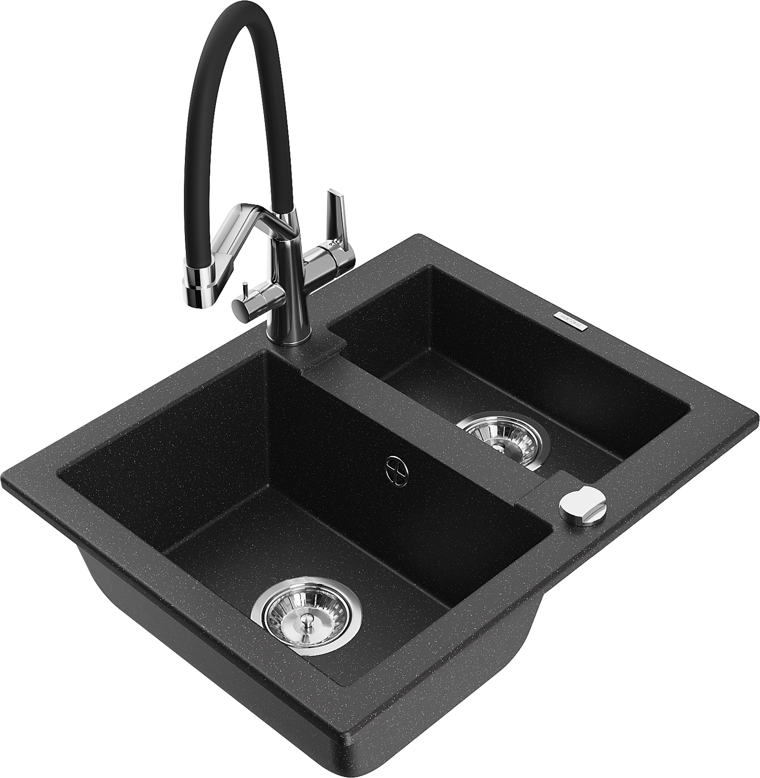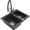 Mexen Carlos granieten spoelbak 1,5-komorige met Duo keukenkraan, zwart/zilver metallic - 6518-73-671701-07