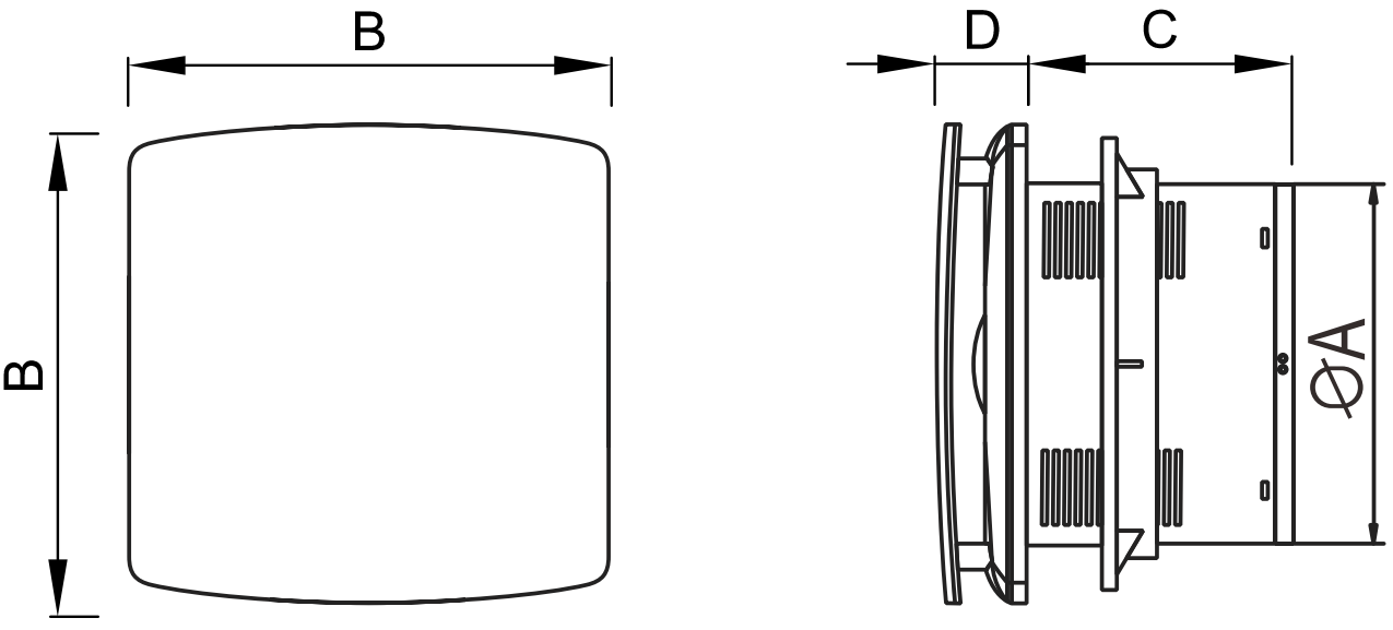 - Timer, waarmee de ventilator na uitschakeling kan blijven werken binnen een tijdsbereik van 30 seconden tot 30 minuten, afhankelijk van de timerinstelling