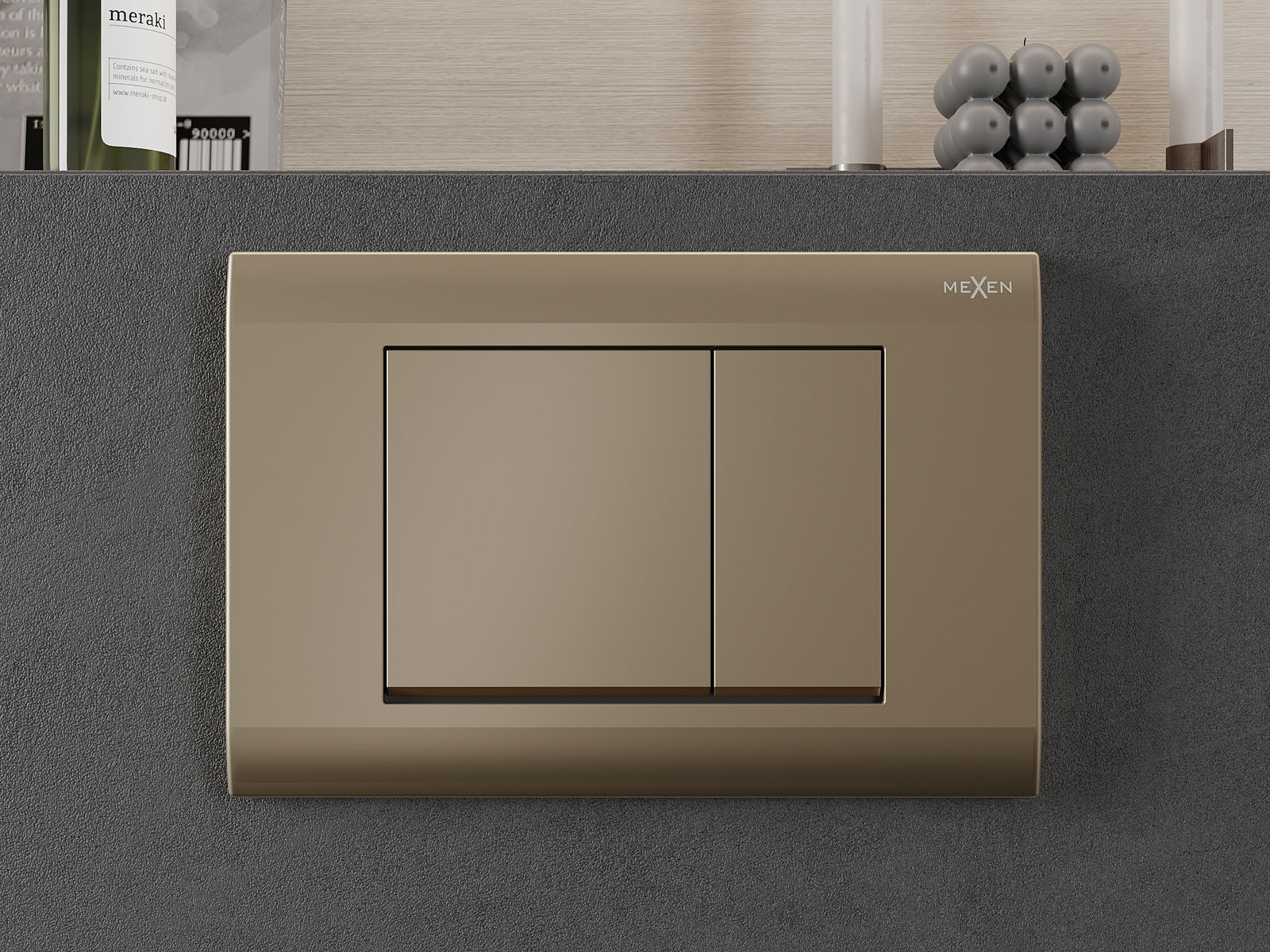Het doorspoelen wordt op de traditionele manier geactiveerd - het indrukken van een knop activeert een hendel die een klep opent en water doorspoelt. Het is een eenvoudige en intuïtieve oplossing die vaak wordt aangetroffen in badkamers.